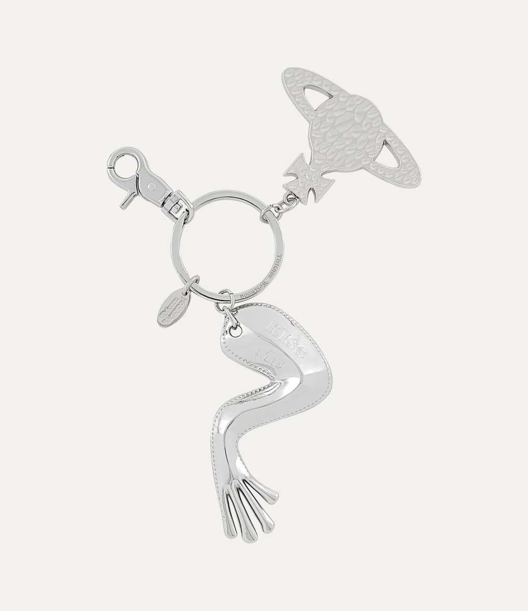 Nasz brelok do kluczy Frog Leg Charm, wykonany z polerowanego srebrnego metalu, stanowi zabawne nawiązanie do bajkowej tradycji „pocałunku żaby”. Inspirowany antyczną dekoracją repoussé, ozdobny kształt żabiej łapki jest wygrawerowany hasłem „Kiss me” i wykończony charakterystycznym dla marki motywem kuli z efektem młotkowania.