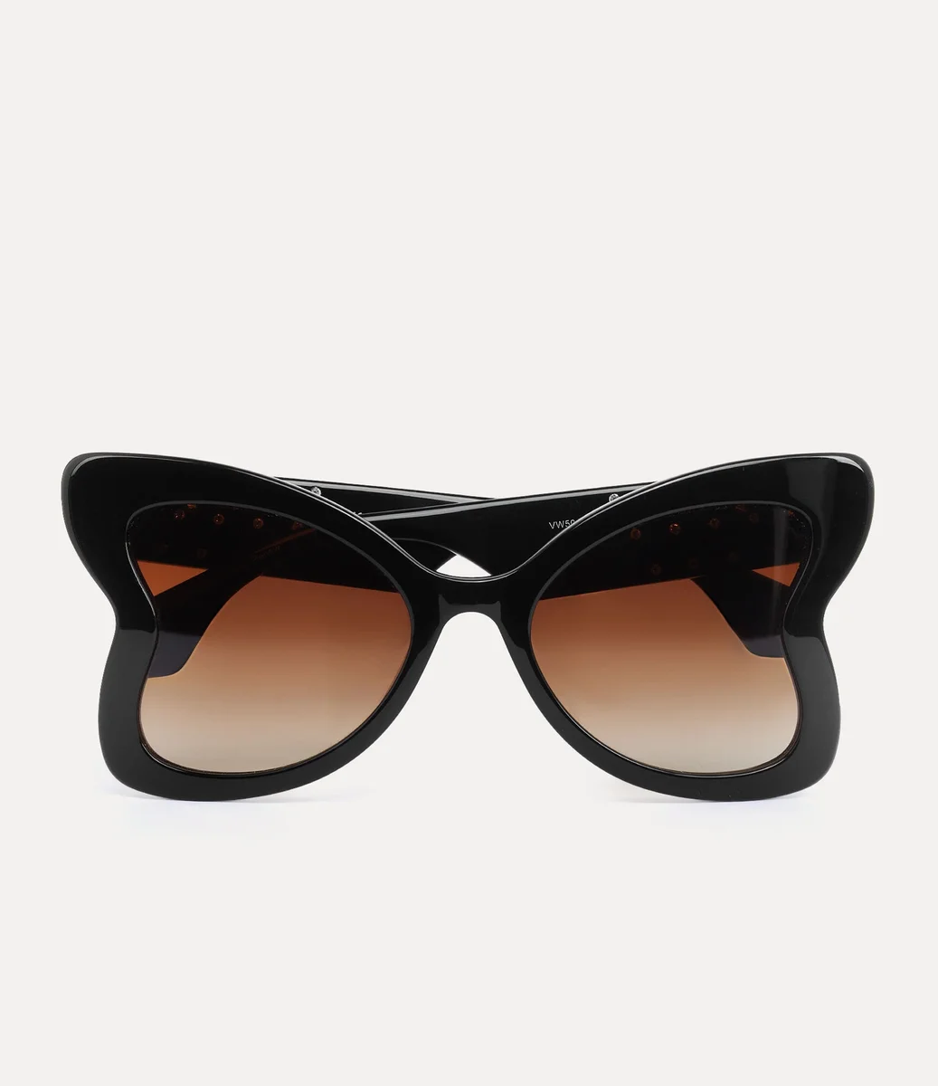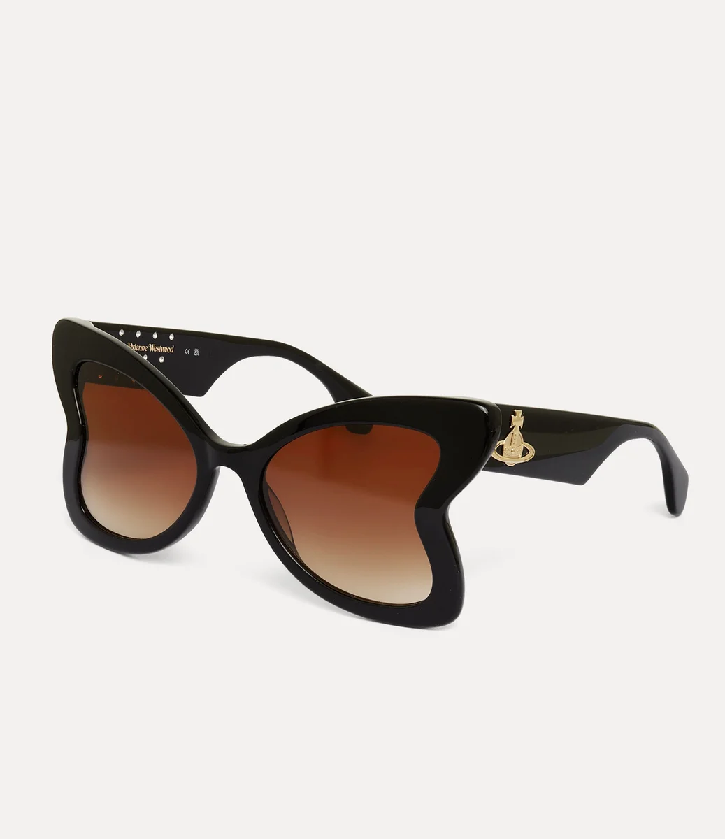 Nasze ręcznie wykonane okulary przeciwsłoneczne Athalia z oversize’ową oprawką inspirowaną motylem mają kryształowe wykończenie wewnątrz i soczewki z gradacją. Inspirowane pięknem gruzińskich medalionów jubilerskich, zauszniki są ozdobione złotą kulką.