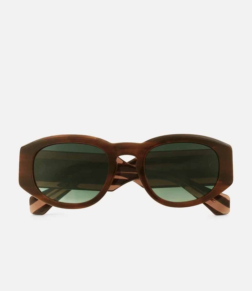 - Ręcznie wykonane oprawki i końcówki zauszników z octanu są wykonane z innowacyjnego materiału Eastman „Acetate Renew” – w 60% z pulpy drzewnej pochodzącej z lasów zarządzanych zgodnie z certyfikowanymi standardami leśnymi oraz w 40% z tworzyw sztucznych pochodzących z recyklingu.