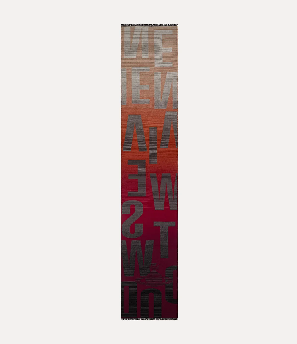 Szalik Vivienne Westwood charakteryzuje się odważnym wzorem żakardowym „Logomania” w delikatnych odcieniach gradientu. Wykończony lekkimi frędzlami wzdłuż krawędzi, odzwierciedla wizję Vivienne dotyczącą przeniesienia przeszłości w przyszłość.