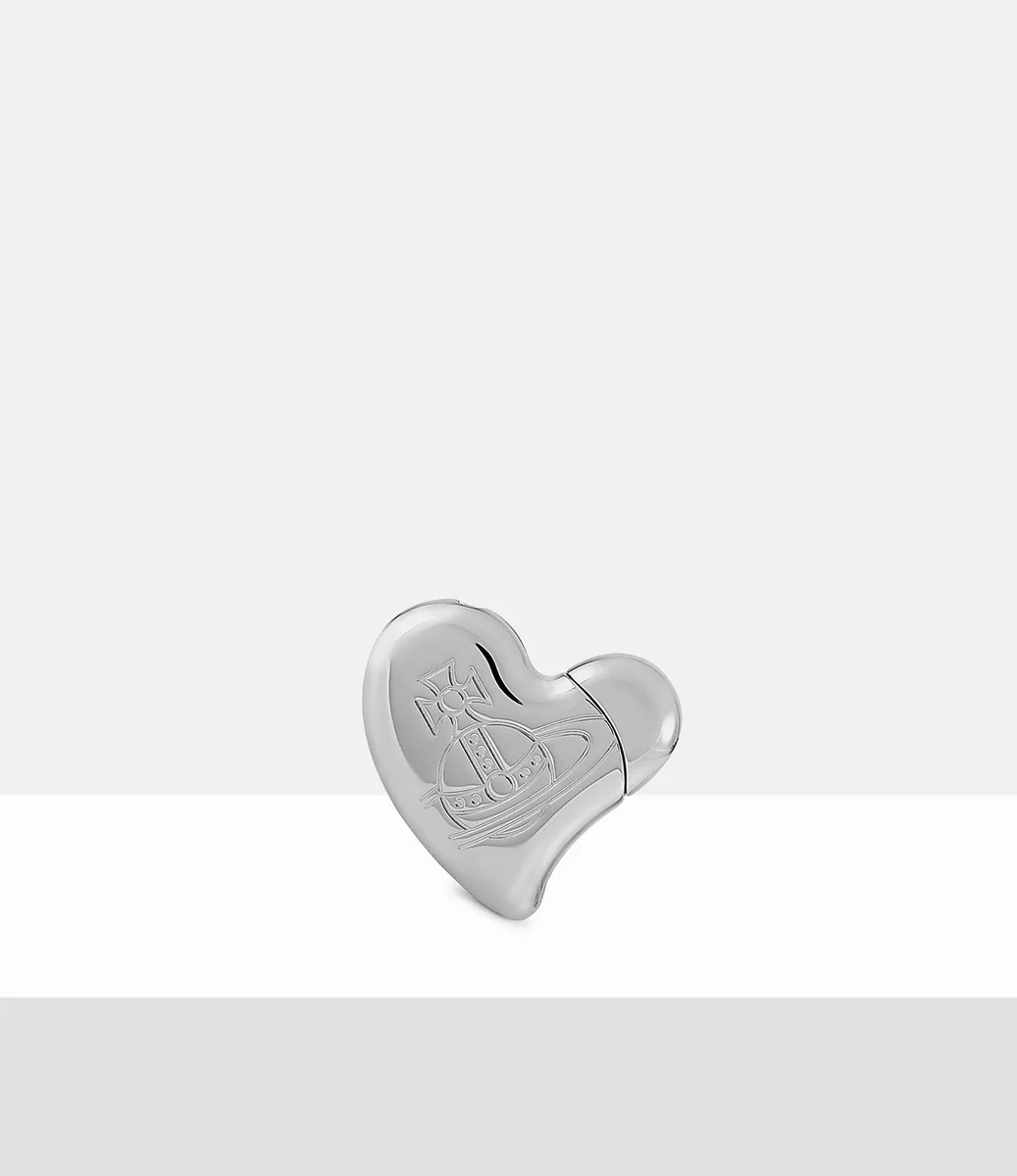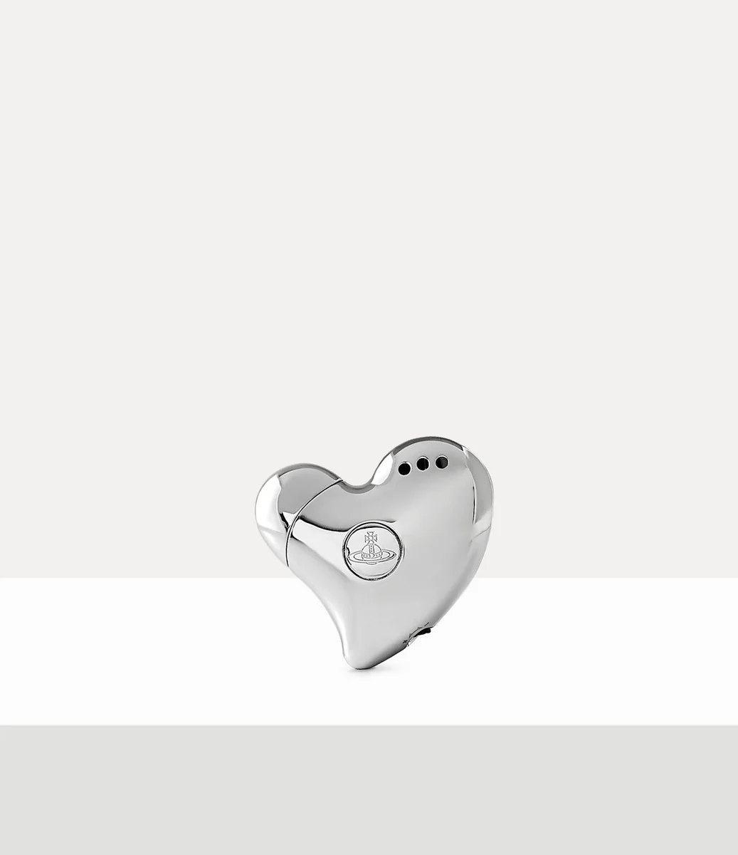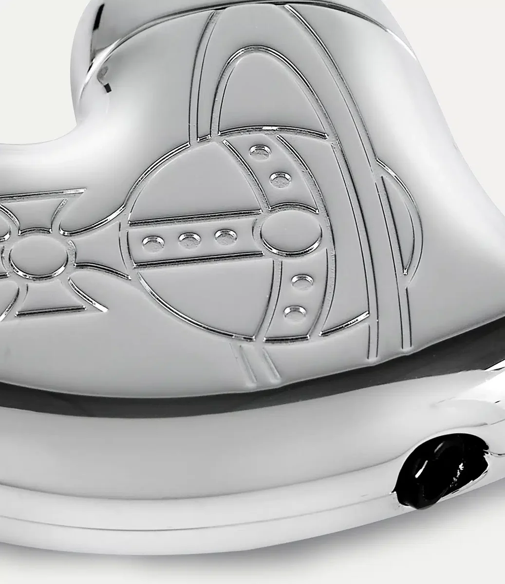 Nasza zapalniczka Heart ma wypolerowane srebrne wykończenie i asymetryczny kształt serca, nawiązujący do sympatii Vivienne do ludzkości i naszej planety. Element ten jest delikatnie wytłoczony charakterystycznym dla marki motywem „Line Orb”, symbolizującym tradycję, otoczonym niebiańskimi pierścieniami Saturna, symbolizującymi przyszłość.