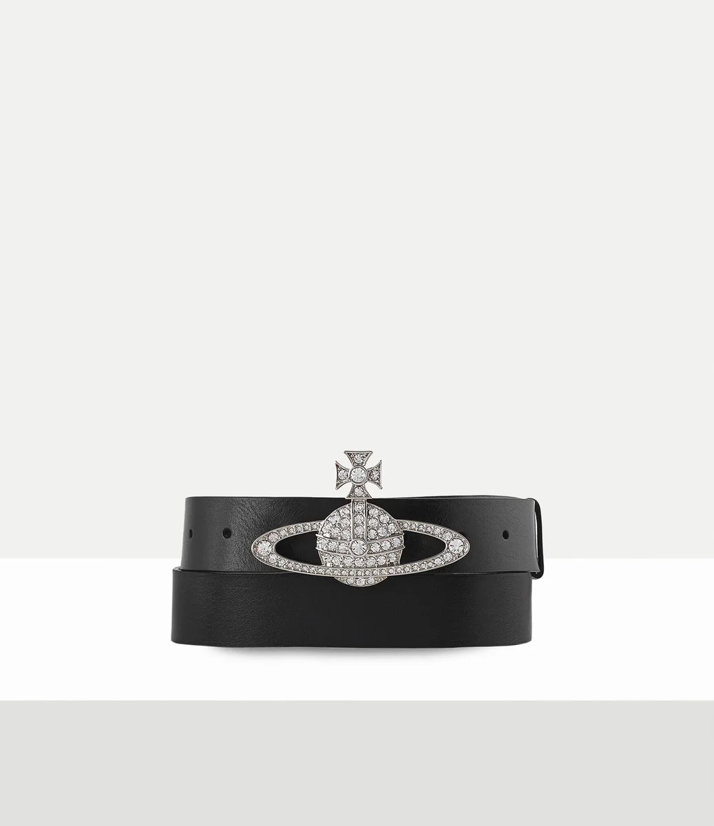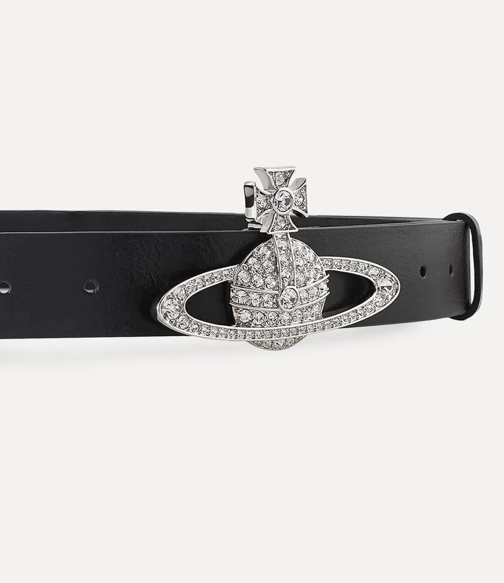 Charakterystyczny motyw kuli naszego domu nawiązuje do wizji Vivienne, która pragnęła przenieść tradycję w przyszłość. W tym sezonie pasek Medium Bas Relief zyskał dwuwymiarowy wzór kuli na klamrze, ozdobiony rzędami błyszczących białych kryształów, uzupełniony srebrnymi metalowymi detalami.