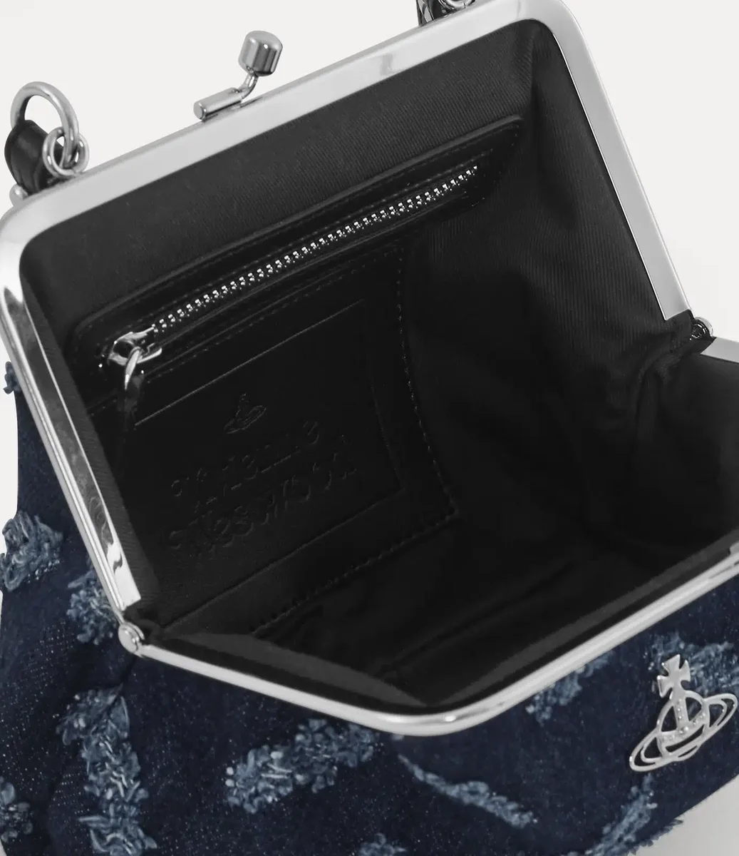 Nasza torebka Granny Frame jest ozdobiona motywem „Ripped” z dżinsu, nawiązującym do naszej kolekcji wiosna–lato 1991 „Cut, Slash and Pull”. Inspirowany XVI-wieczną tradycją rozcinania i nakłuwania ubrań w celu odsłonięcia warstw znajdujących się pod spodem, projekt uzupełnia srebrny motyw „Line Orb” z przodu.