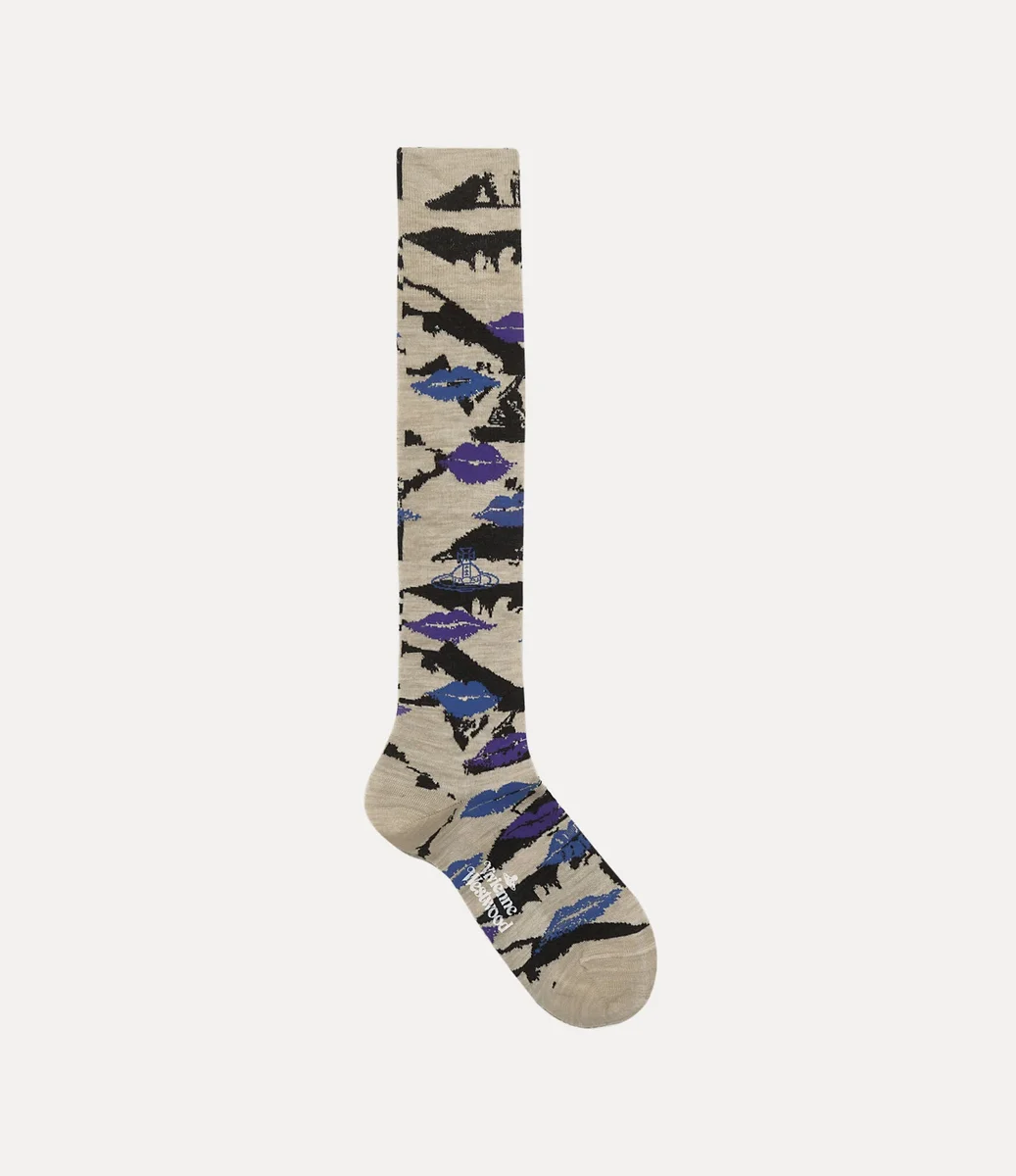 W tym sezonie nasze wysokie skarpety do kolan zdobią grafiki „Kisses”, inspirowane opakowaniem perfum Boudoir marki. Wykonane z miękkiej mieszanki bawełny, skarpety są ozdobione charakterystycznym motywem Orb, symbolizującym etos marki, polegający na przenoszeniu przeszłości w przyszłość. przyszłość