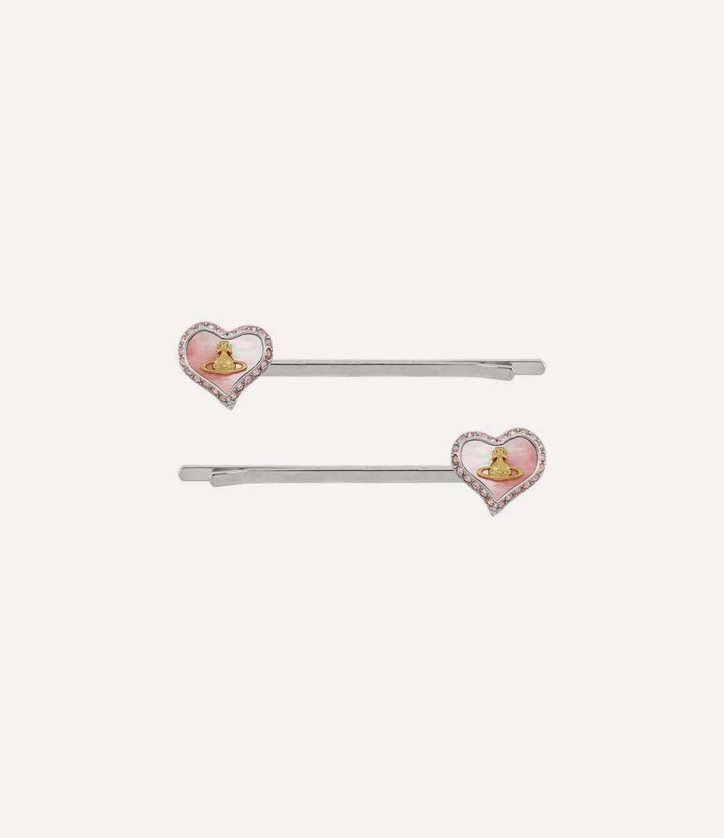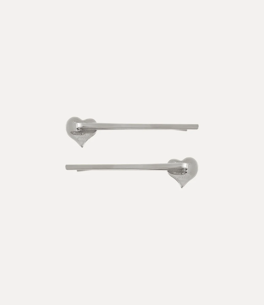 Nasze spinki do włosów Petra mają srebrny kolor i są ozdobione asymetrycznym motywem w kształcie serca, nawiązującym do sympatii Vivienne do ludzkości i naszej planety. W środku znajduje się kula symbolizująca tradycję, otoczona pierścieniami Saturna symbolizującymi przyszłość.