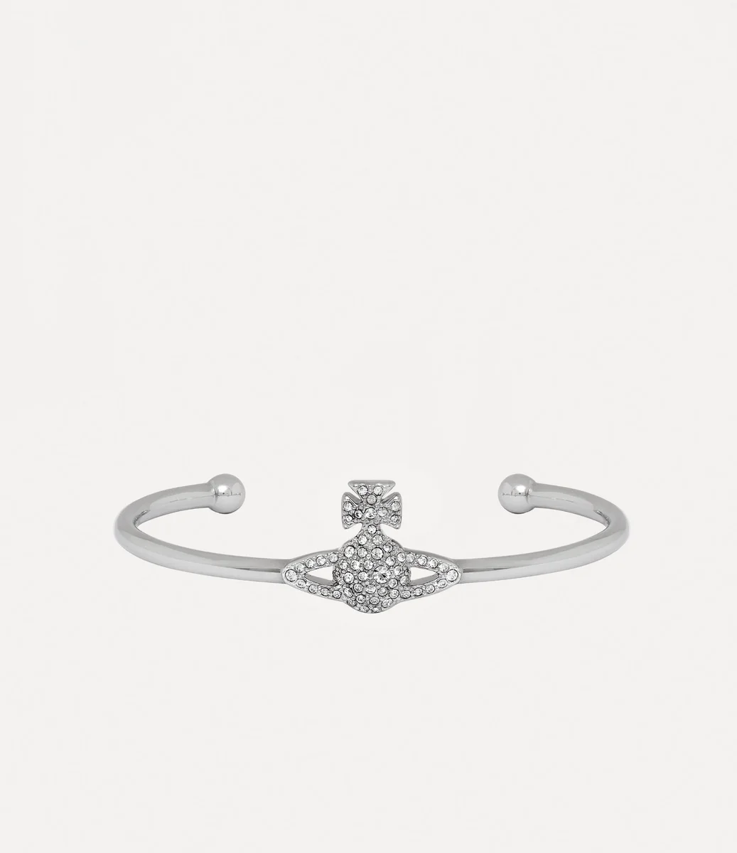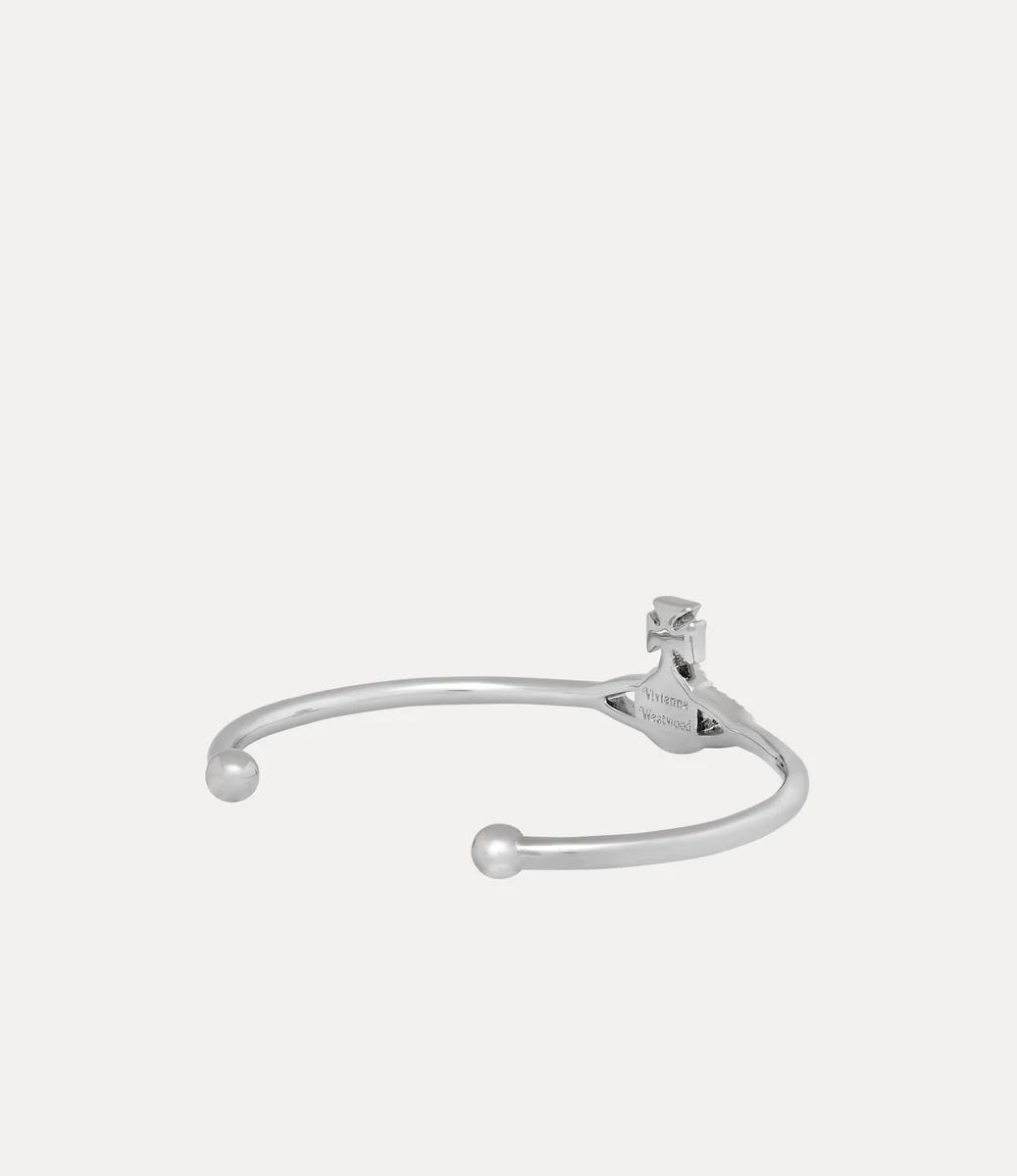 Płaskorzeźba w kształcie kuli jest istotnym elementem ikonografii domu mody, synonimem etosu Vivienne, polegającego na przenoszeniu przeszłości w przyszłość. Nasza bransoletka Grace Bas Relief Open ma płaskorzeźbę w kształcie kuli pośrodku projektu, wzbogaconą białymi kryształowymi detalami i wykończoną srebrnym metalem.
