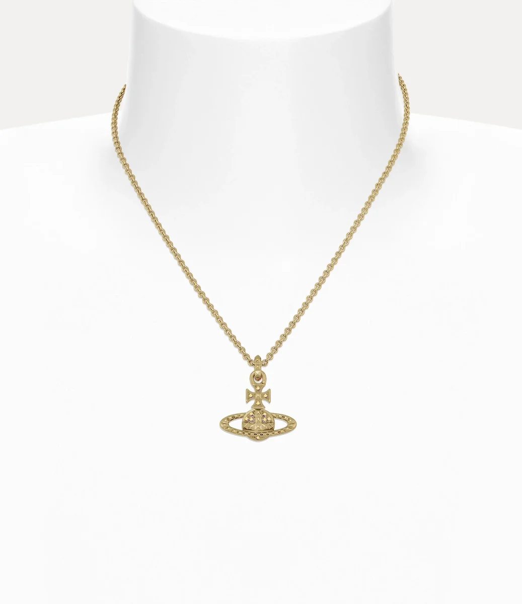 Naszyjnik Mayfair Bas Relief powraca w tym sezonie w złoconej wersji z błyszczącymi, opalizującymi kryształowymi zdobieniami. Naszyjnik ma kształt kuli, który symbolizuje wizję marki dotyczącą przeniesienia tradycji w przyszłość, oraz detale w postaci ćwieków, symbolizujące nonkonformizm – zgodnie z charakterystycznym dla Vivienne punkowym podejściem.
