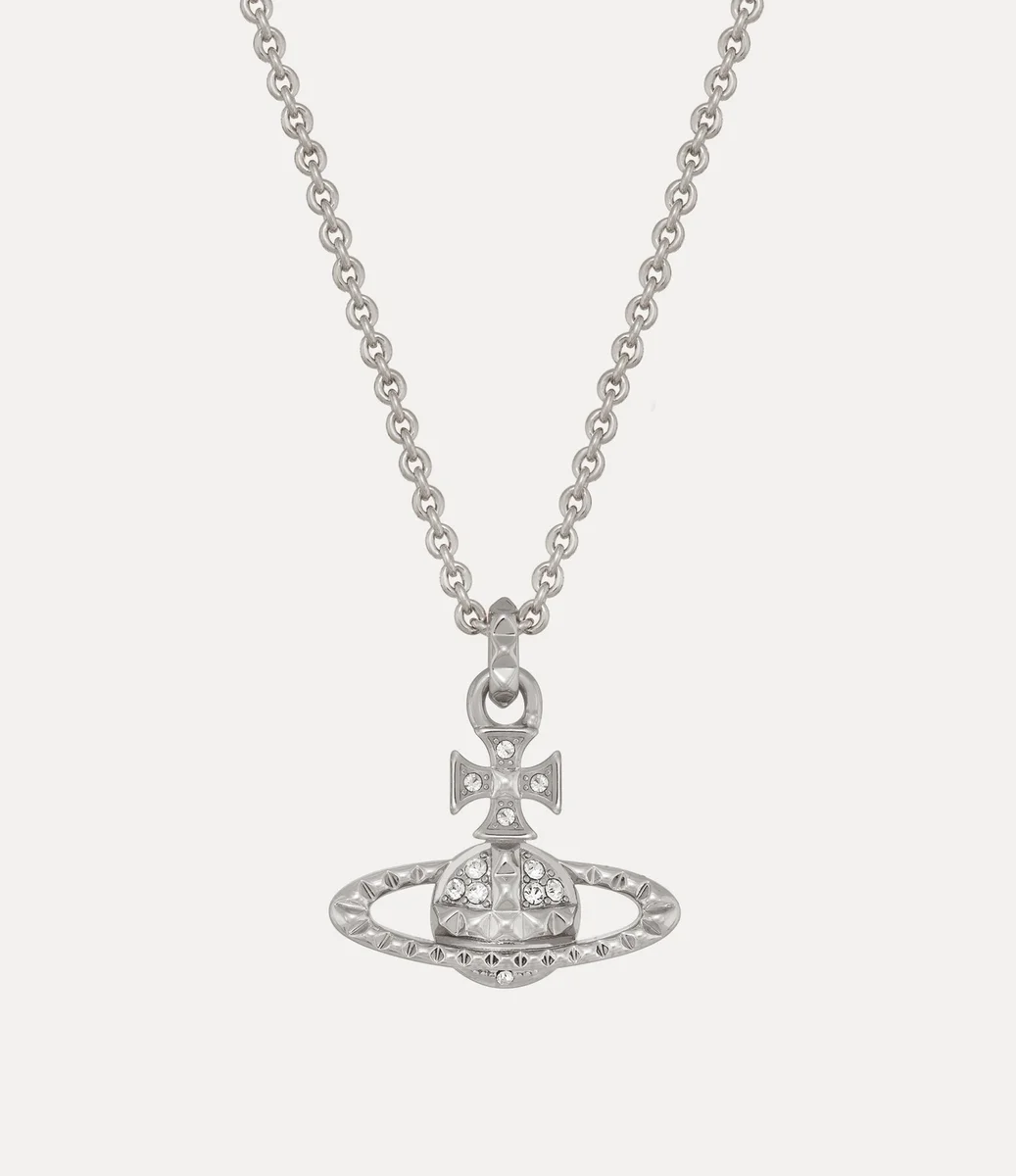 Naszyjnik Mayfair Bas Relief Pendant powraca w tym sezonie w srebrnym kolorze i z błyszczącymi kryształowymi zdobieniami. Naszyjnik ma kształt kuli, co symbolizuje wizję marki dotyczącą przeniesienia tradycji w przyszłość, a detale w postaci ćwieków są symbolem nonkonformizmu – zgodnie z charakterystycznym dla Vivienne punkowym podejściem.