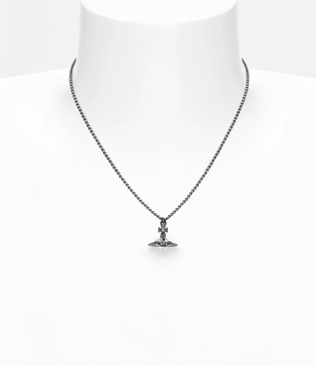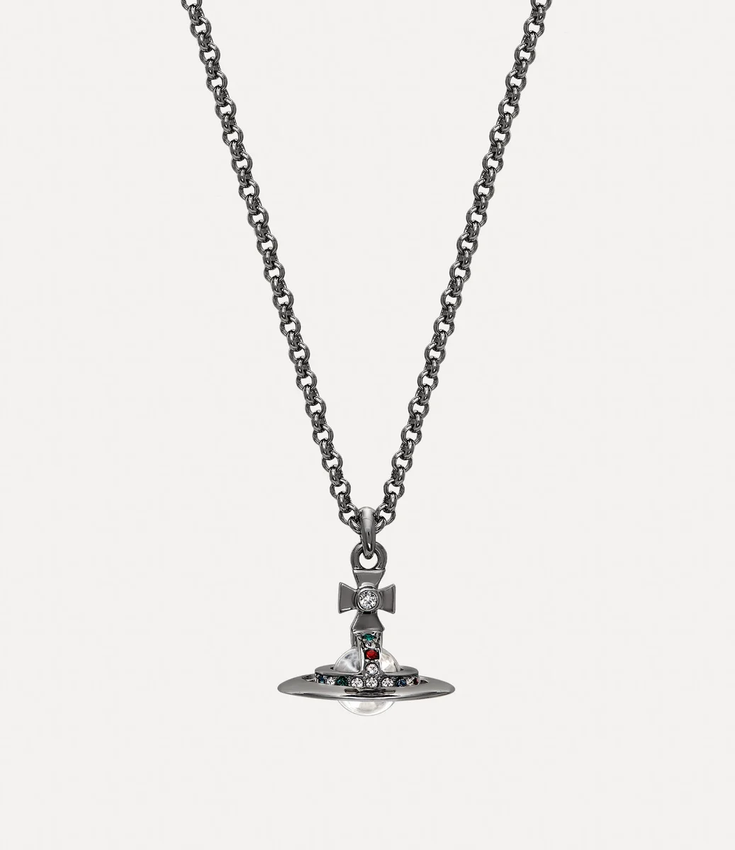 Nasza naszyjnik New Petite Orb Pendant został w tym sezonie odświeżony dzięki posrebrzanej powłoce. Ozdobiony błyszczącymi czerwonymi, szmaragdowymi i białymi kryształkami, projekt zawiera naszą charakterystyczną trójwymiarową kulę w środku łańcuszka – symbolizującą wizję Vivienne dotyczącą przeniesienia tradycji w przyszłość.