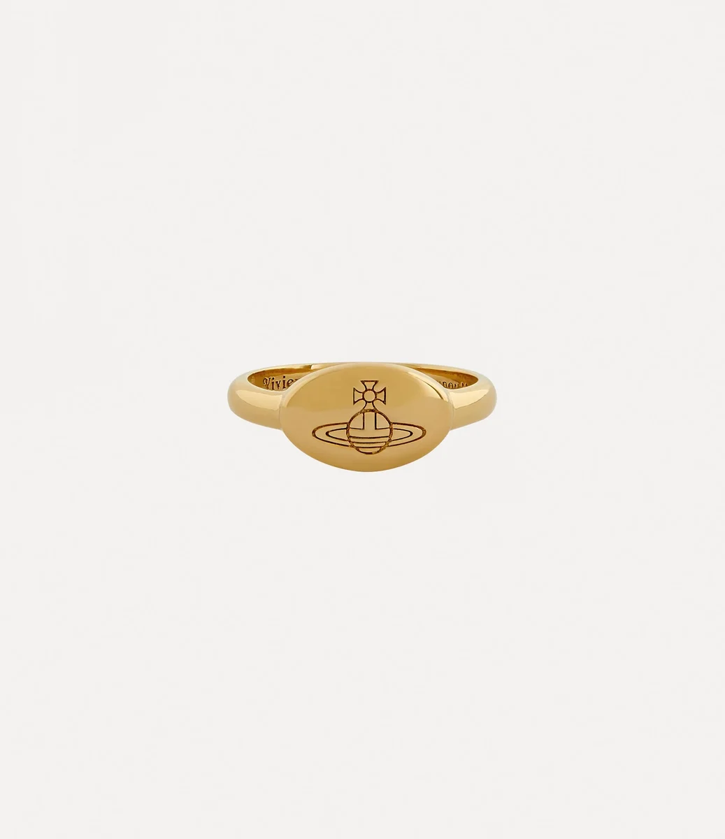 Nasz pierścionek Tilly ma klasyczny kształt sygnetu, wykończony srebrem pochodzącym z recyklingu i wzbogacony złotym pokryciem. Ten pierścionek Vivienne Westwood zdobi owalna powierzchnia z wygrawerowanym charakterystycznym dla naszej marki motywem kuli, wzbogaconym patyną, która podkreśla ogólną estetykę – nawiązując do wizji Vivienne, aby wprowadzić tradycję w przyszłość.