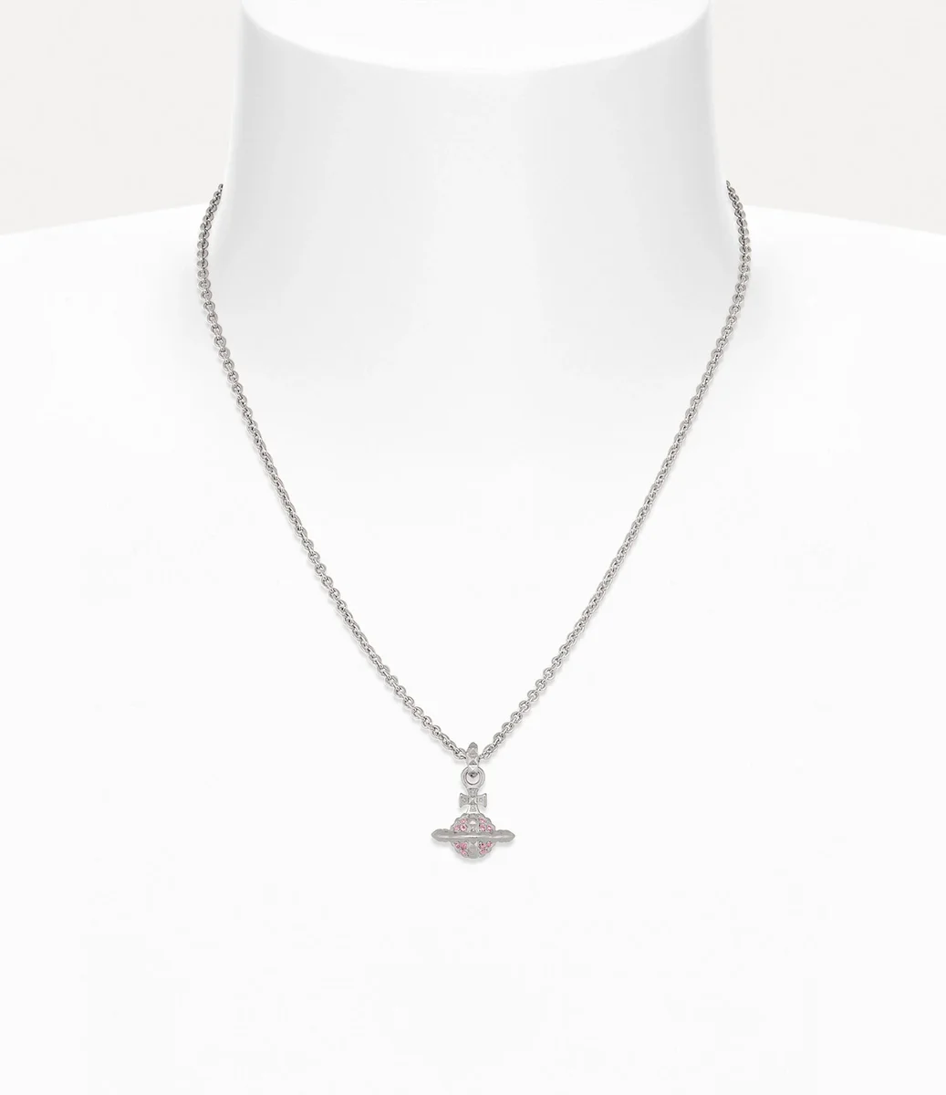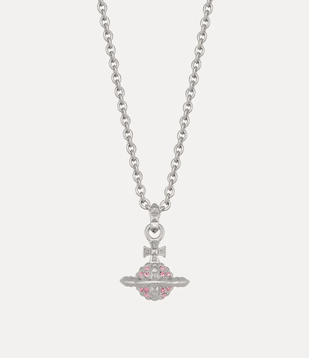 Projekt naszego naszyjnika Mayfair Small Orb Pendant czerpie inspirację z charakterystycznego emblematu w kształcie kuli, uosabiającego etos łączenia przeszłości z przyszłością. Naszyjnik posiada trójwymiarowy wisior w kształcie kuli, ozdobiony jasnoróżowymi kryształkami i ćwiekami, nawiązujący do charakterystycznego dla marki stylu punkowego.