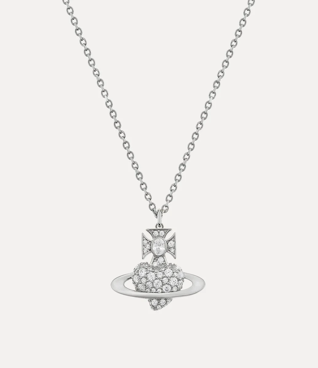 Nasza naszyjnik z wisiorem Valentine’s Agnatha Bas Relief przywraca archiwalny asymetryczny wzór serca, odzwierciedlający miłość Vivienne do ludzkości i planety. Wisior w kształcie serca, ozdobiony błyszczącymi białymi kryształowymi detalami, otoczony jest pierścieniami Saturna z białej emalii, symbolizującymi przyszłość, i ozdobiony polerowaną, srebrną powłoką.