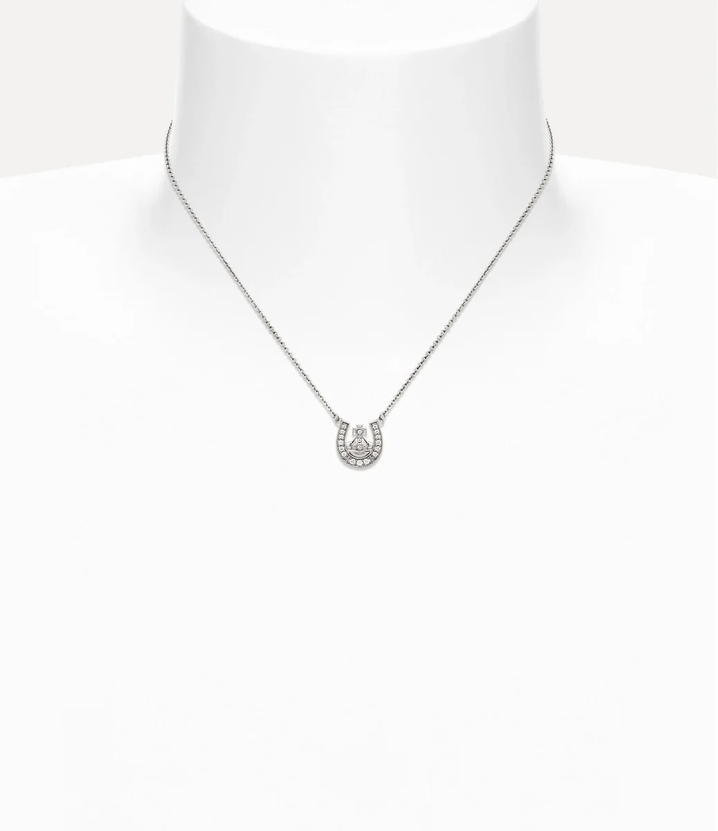 Naszyjnik z zawieszką Mare jest wykonany z recyklingowanego srebra i pokryty polerowaną powłoką w kolorze platyny. Projekt nawiązuje do klasycznego motywu kuli i podkowy, będącego charakterystycznym symbolem marki, i jest ozdobiony kryształowymi detalami w tym samym odcieniu.