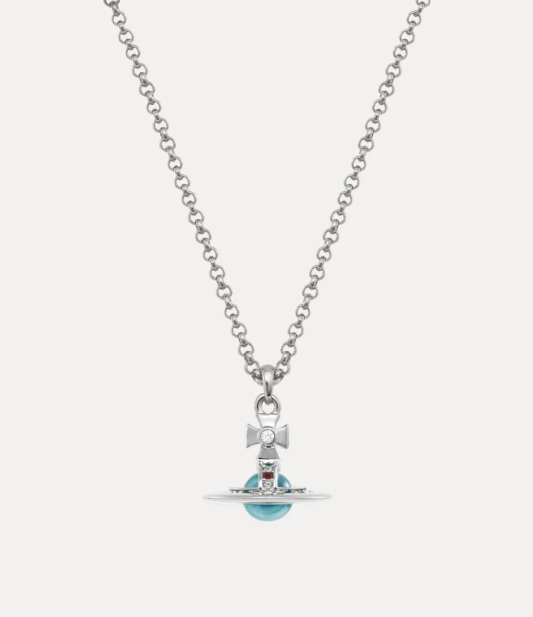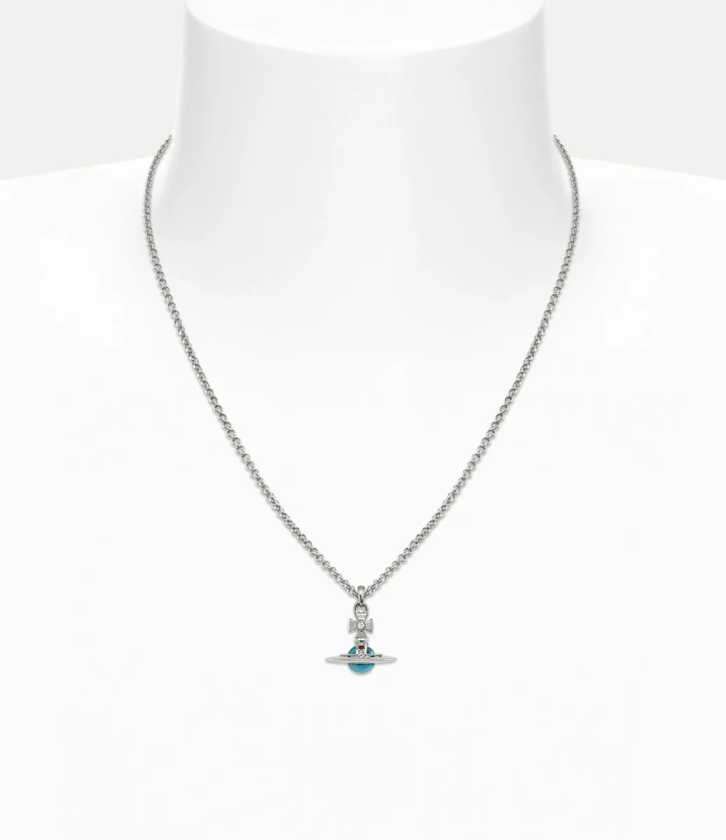 Nasz klasyczny naszyjnik New Petite Orb Pendant to klasyczny styl naszej marki, z charakterystyczną trójwymiarową niebieską kulą w centrum projektu, inspirowaną motywem kuli naszej marki. Inkrustowany błyszczącymi, wielobarwnymi kryształami, naszyjnik nawiązuje do wizji Vivienne, która przenosi tradycję w przyszłość.