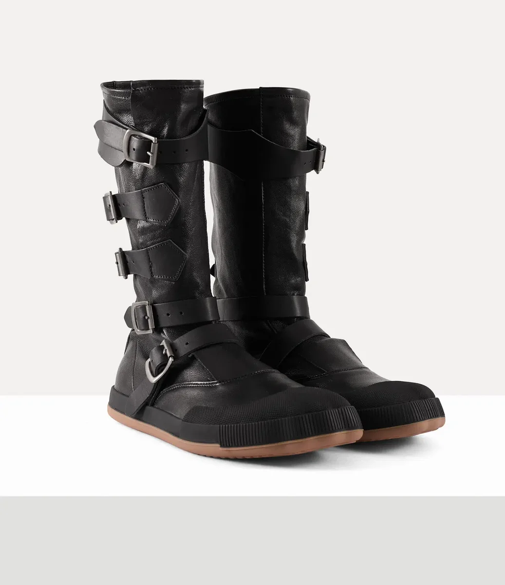Nasze charakterystyczne buty Pirate, po raz pierwszy zaprezentowane w kolekcji jesienno-zimowej „Pirate” z 1981 roku, zostały zaprojektowane tak, aby oddać buntowniczego ducha opowieści o piratach z XVII i XVIII wieku. Buty Animal Pirate z bieżącego sezonu stanowią hołd dla oryginalnego projektu i charakteryzują się luźnym profilem ze skóry z dużymi klamrami oraz czubkiem inspirowanym zwierzętami – charakterystycznym detalem z archiwów domu mody.