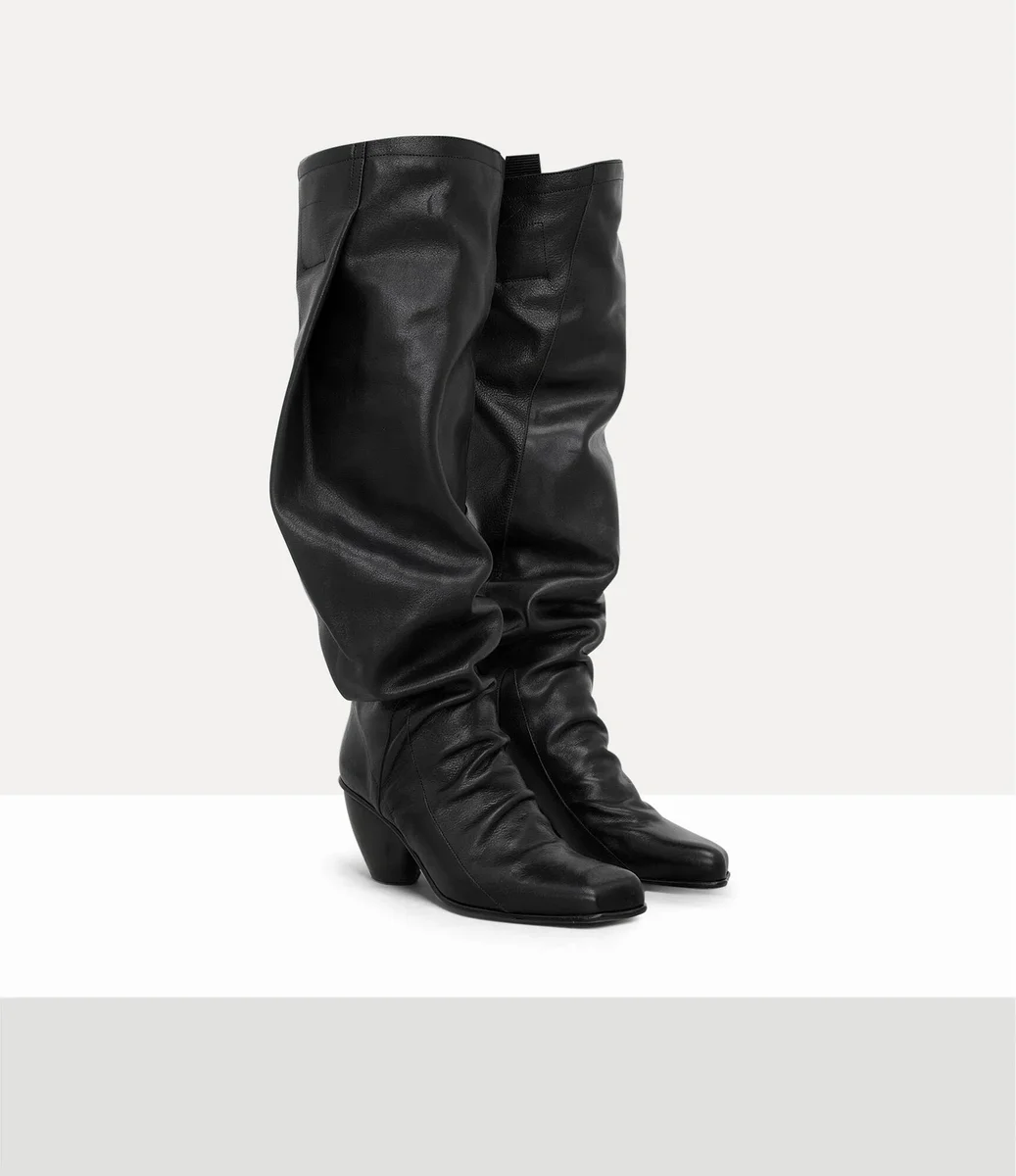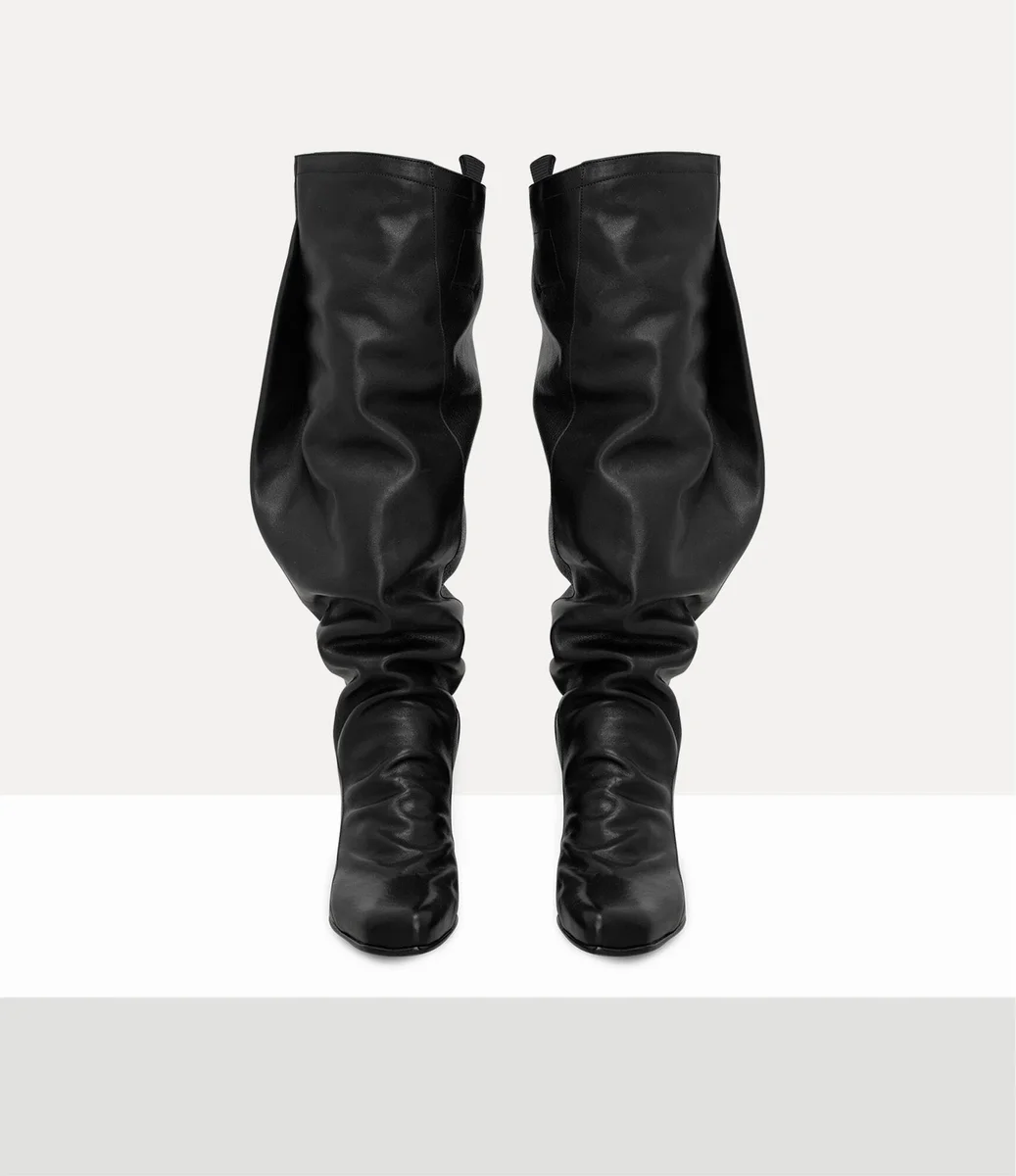 Nasze buty River to nowość w tym sezonie. Charakteryzują się anatomiczną sylwetką, nawiązującą do charakterystycznego motywu „Animal Toe” marki, który po raz pierwszy pojawił się w kolekcji „Summertime” na sezon wiosna-lato 2000. Model ma sylwetkę sięgającą do kolan i podcięty obcas w kształcie stożka.