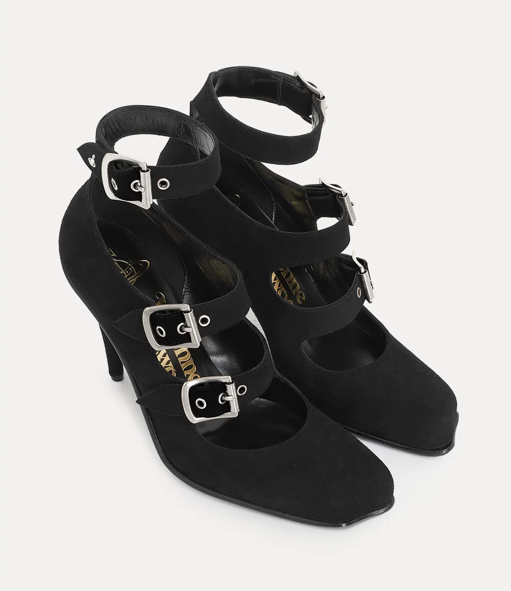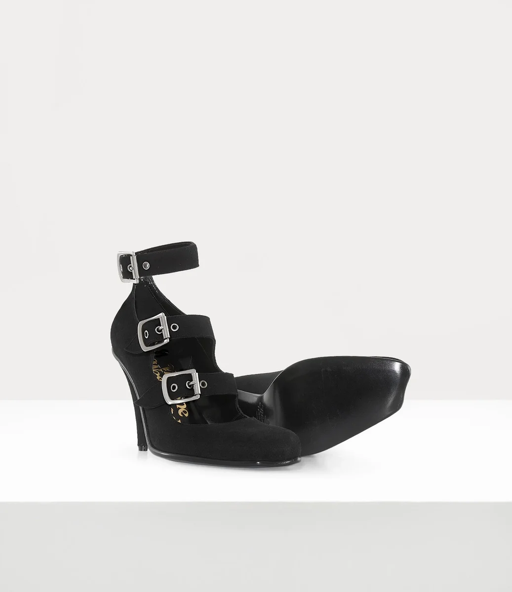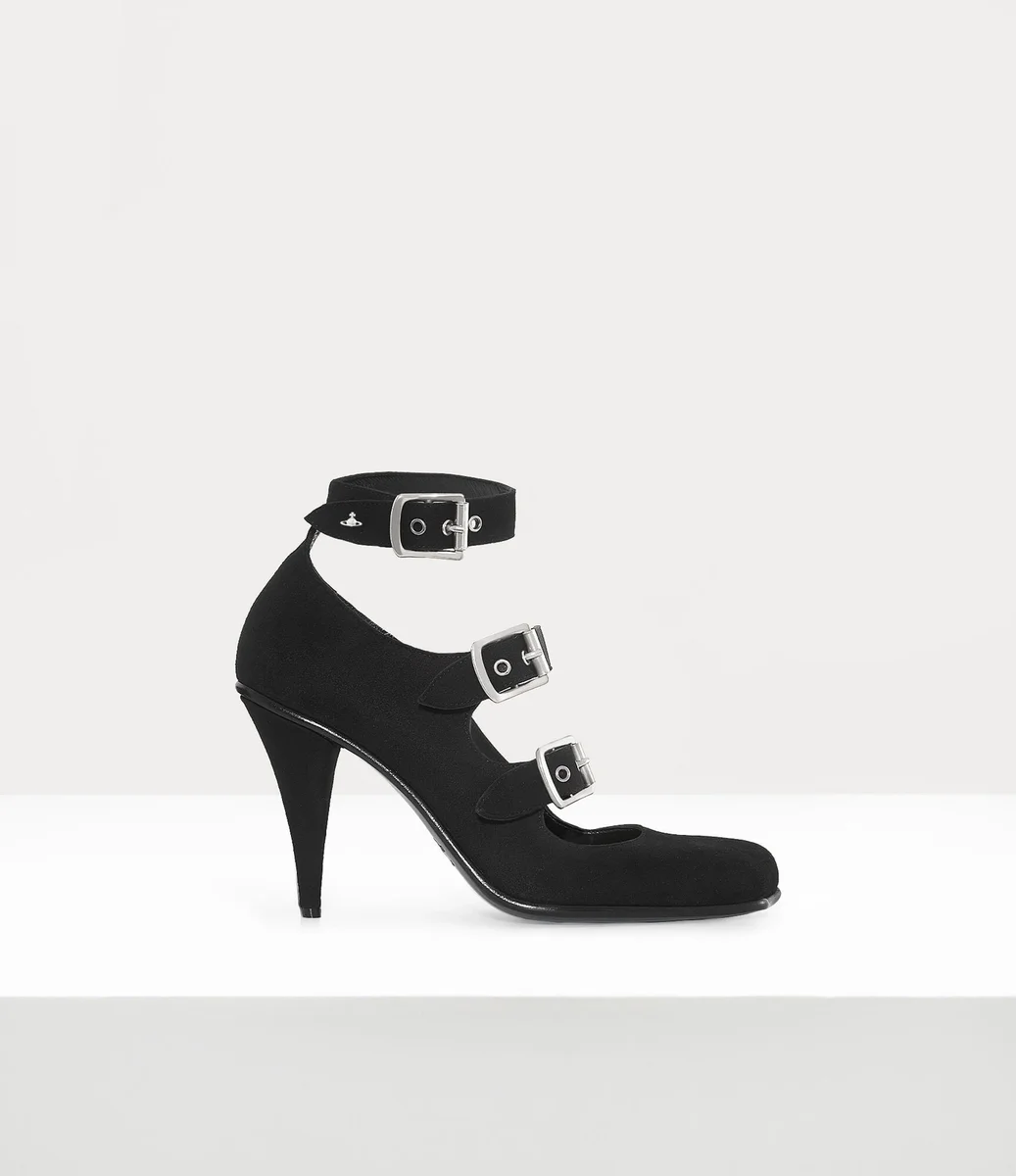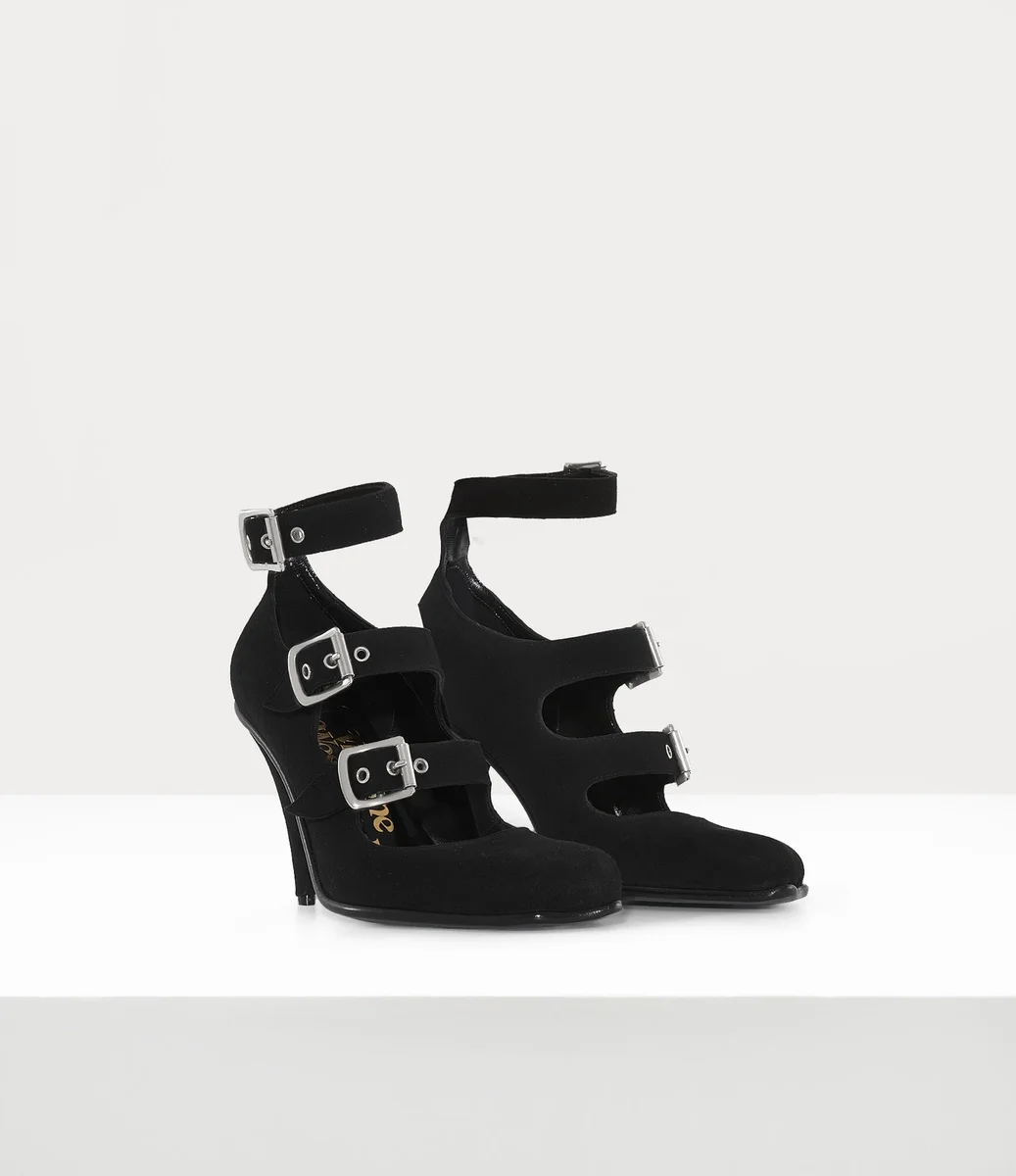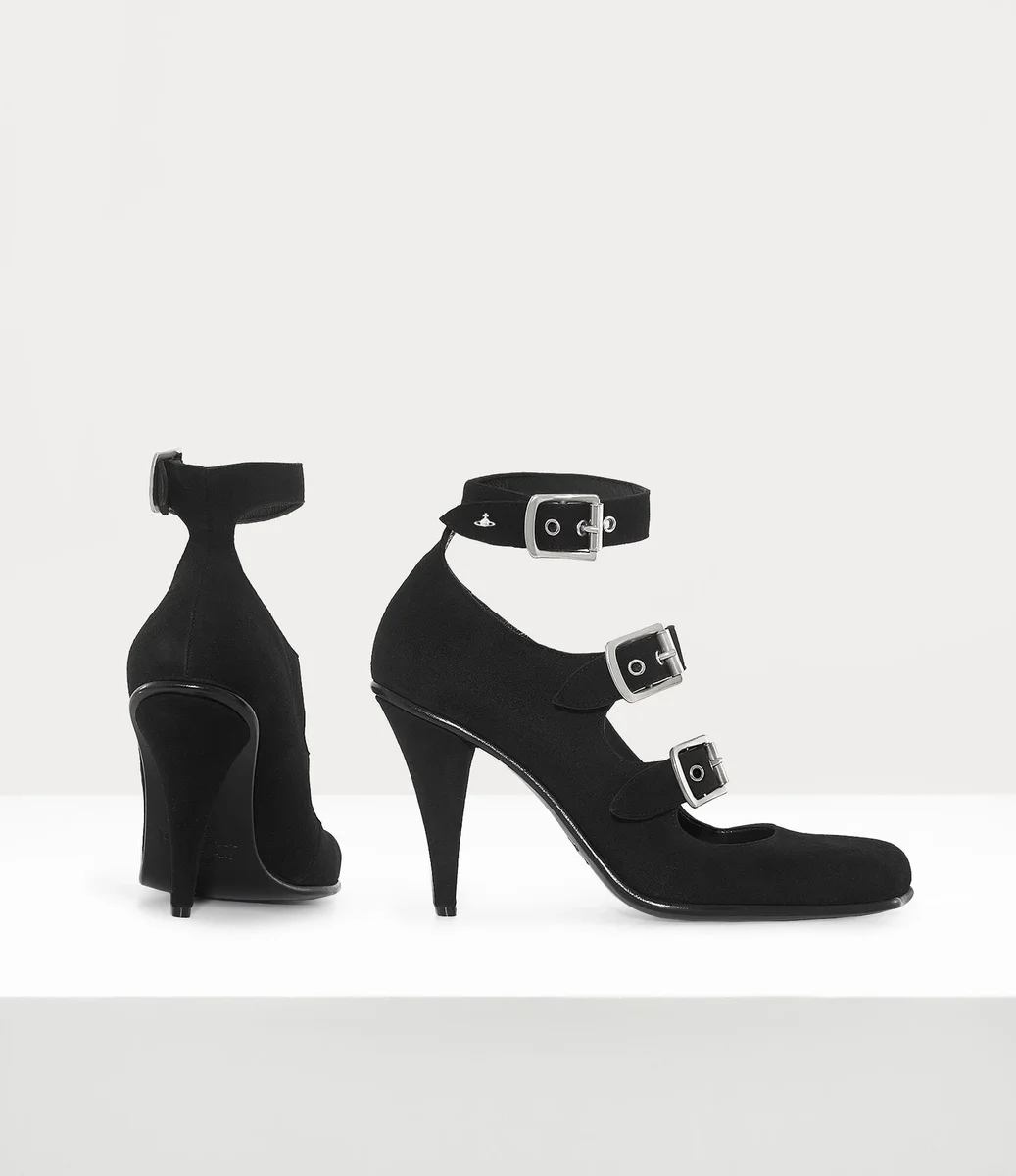 Nasze obcasy Savage mają anatomiczny kształt inspirowany kultowym motywem „Animal Toe” marki, wprowadzonym po raz pierwszy w kolekcji wiosna–lato 2000 „Summertime”. Wykonane z zamszowej skóry, uzupełnione są eleganckimi srebrnymi elementami i miniaturowym motywem kuli na pasku.