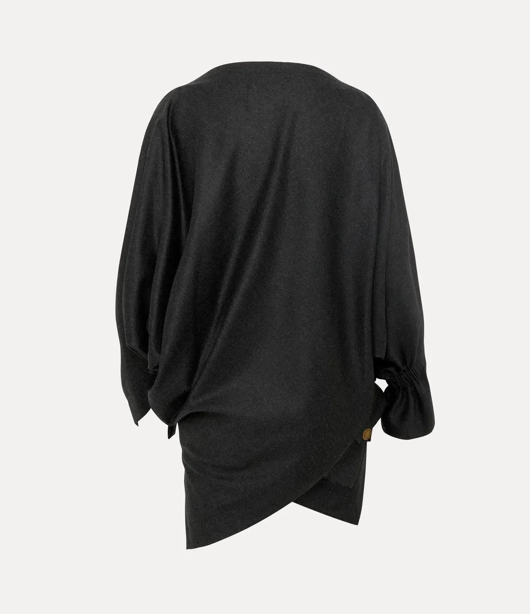 Nasza bluzka Infinity została wykonana z wełny o metalicznym wykończeniu i ozdobiona grafiką „Gołąb i serce”. Ma długie rękawy marszczone przy nadgarstkach, szeroki dekolt w kształcie łódki i opuszczone ramiona, tworząc oversize’ową sylwetkę, która kończy się asymetrycznym dołem.