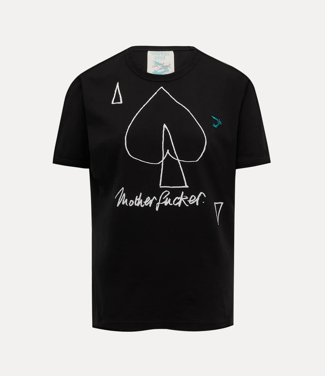 Nasza koszulka Worlds End Classic jest wykonana z miękkiej bawełny, ma krótkie rękawy i okrągły dekolt. Ubranie zdobi archiwalny haft „Arm and Cutlass” na piersi oraz grafika „Motherfucker” marki, po raz pierwszy zaprezentowana podczas pokazu Vivienne Westwood Wiosna-Lato 2018 „We Are Motherfucker”, podkreślająca pilną potrzebę ochrony naszej planety, Matki Ziemi.