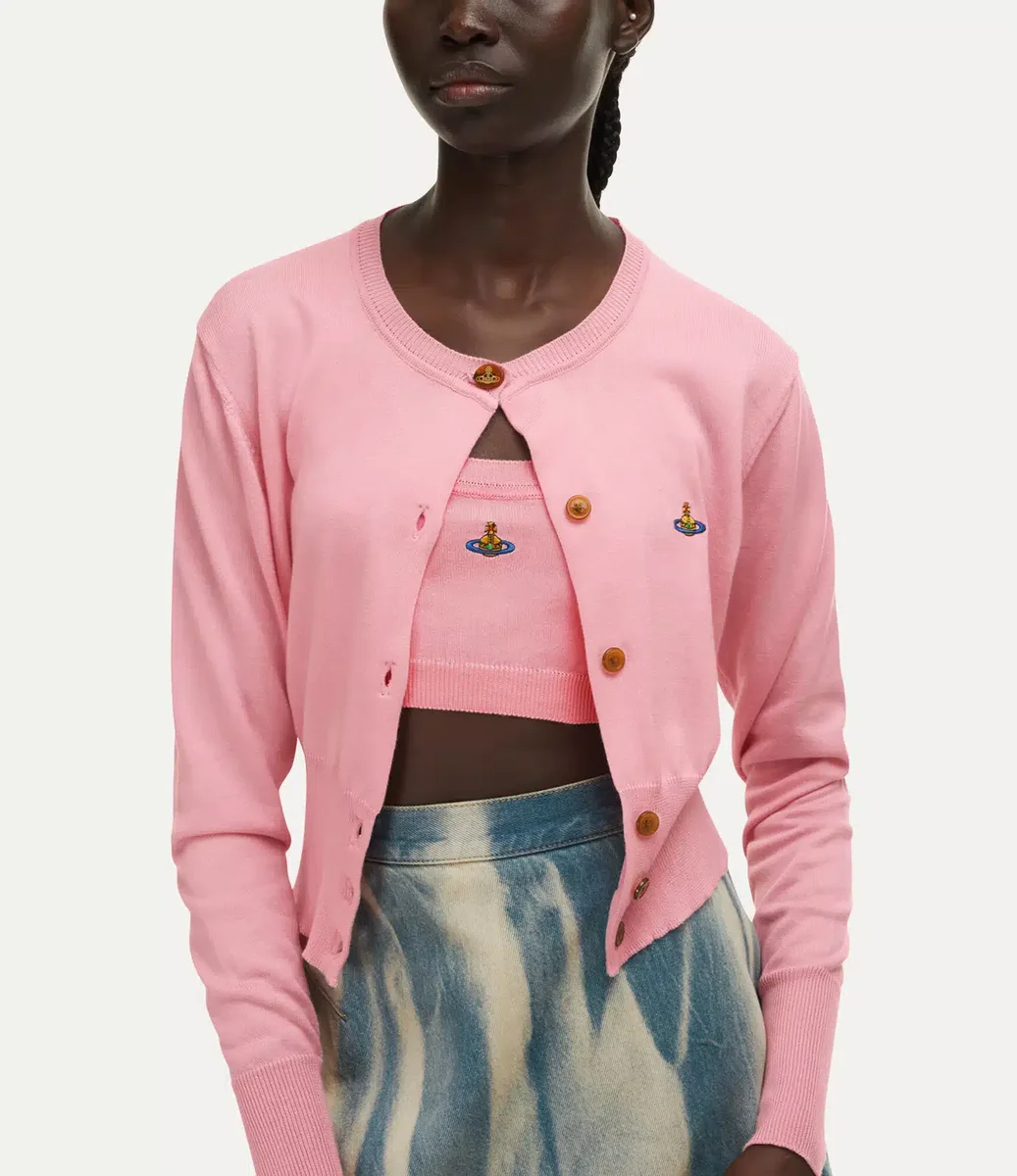 Nasz krótki kardigan Bea został w tym sezonie ponownie zaprojektowany i jest dostępny w wersji z miękkiej mieszanki bawełny i kaszmiru, ozdobiony wielobarwnym haftem w kształcie kuli po lewej stronie klatki piersiowej. Model posiada duże owalne zapięcie na guziki przy dekolcie, wykończone klasycznym grawerowanym motywem „Line Orb”.