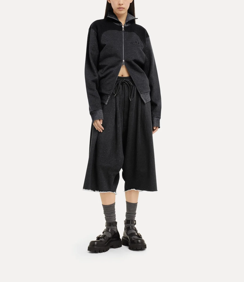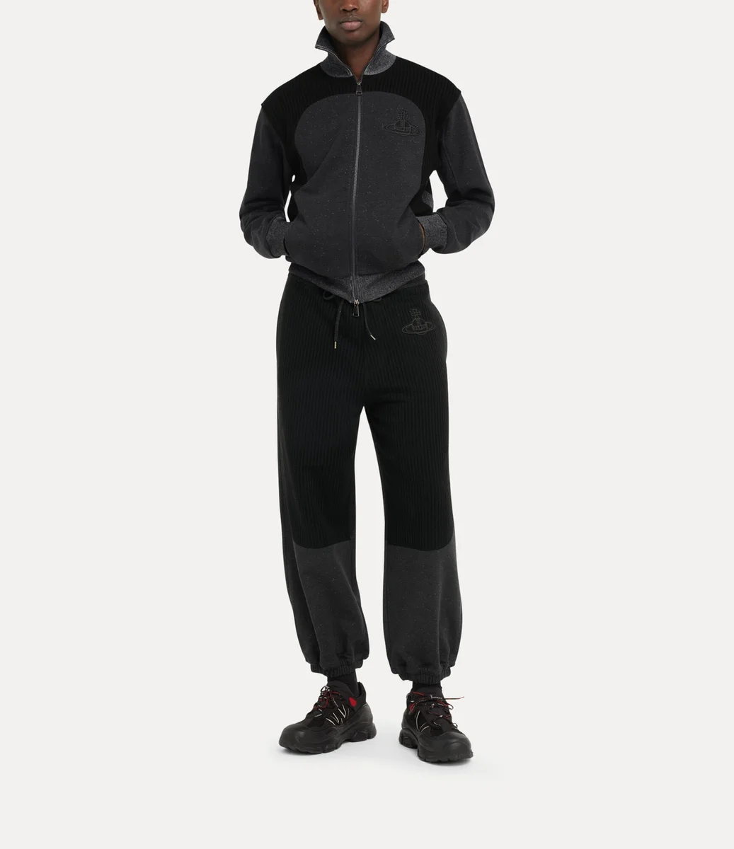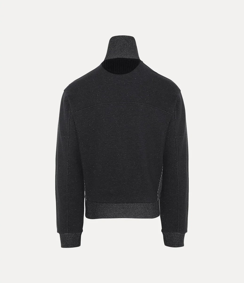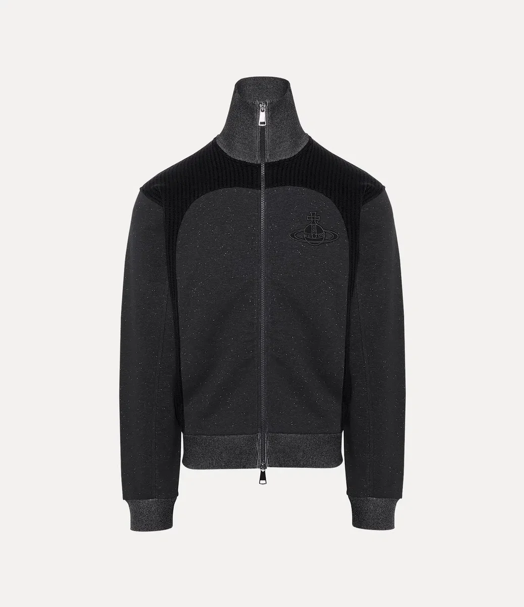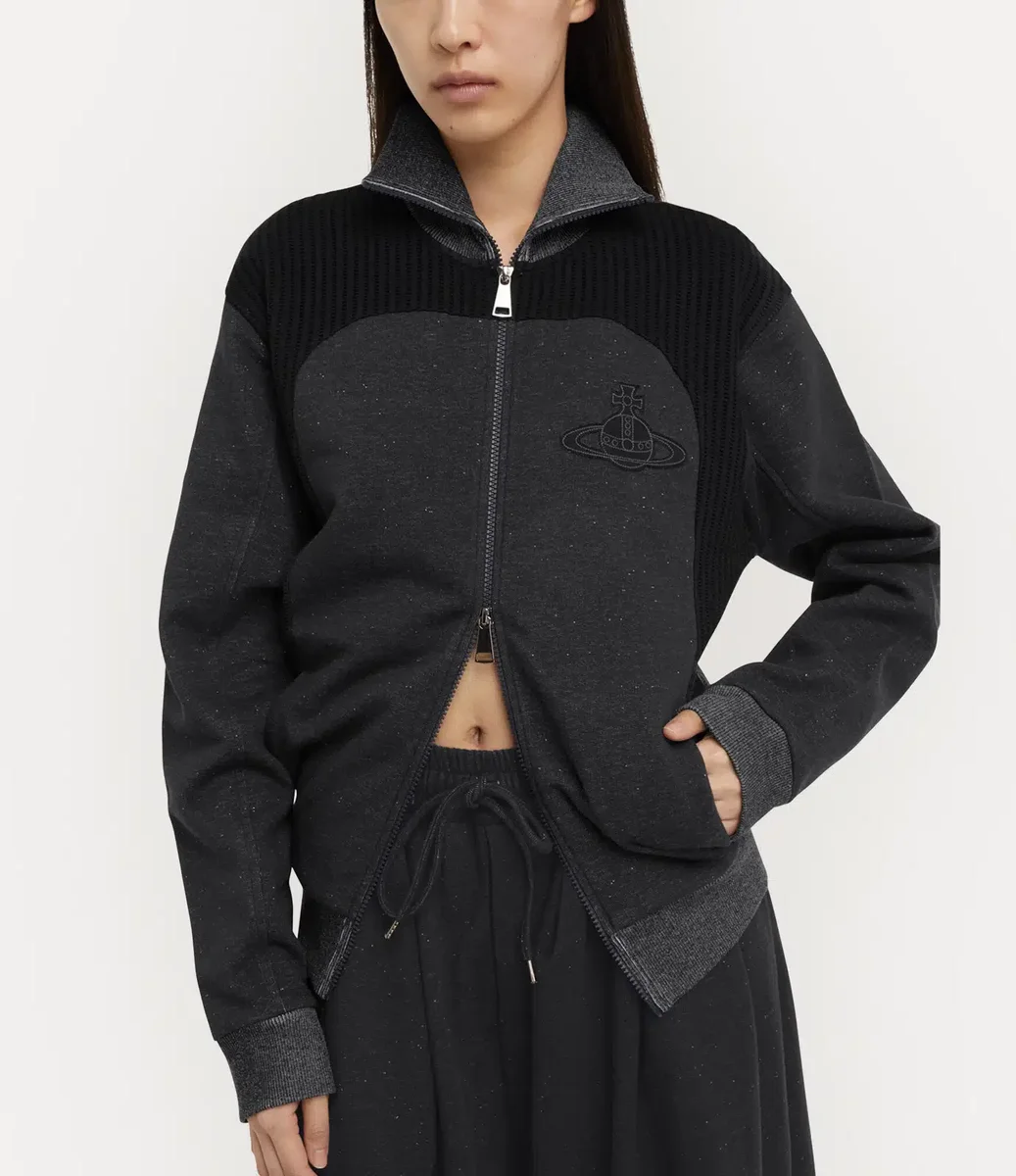 W tym sezonie kurtka Alien Track ponownie wprowadza dwukierunkowy zamek błyskawiczny – detal po raz pierwszy zastosowany przez Vivienne Westwood pod koniec lat 70. i na początku lat 80. jako symbol nonkonformizmu i znak rozpoznawczy jej buntowniczej punkowej estetyki. Kurtka ma wysoki dekolt i prążkowane panele, a całość dopełnia motyw Graffiti orb marki, subtelnie wyhaftowany na piersi tonacyjną nicią.