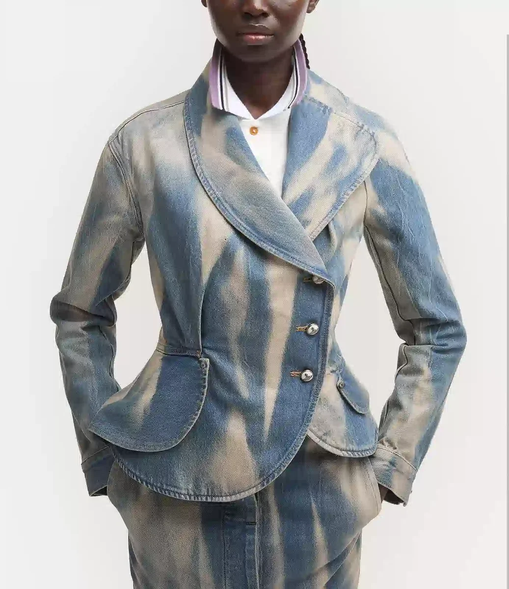Kurtka dżinsowa Vivienne Westwood Stormy została wykonana z miękkiej bawełny i charakteryzuje się wybielonym, wyblakłym wykończeniem, które nadaje jej postarzany, vintage’owy wygląd.