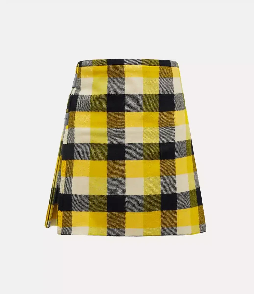 Mini kilt, charakterystyczny element kolekcji marki, jest wykonany z wełny i został na nowo zaprojektowany w żywym motywie „Pixel” w tym sezonie. Sylwetka w kształcie litery A ma wysoki stan, który przechodzi w plisowane wykończenie, z regulowanymi paskami z klamrą po obu stronach, zapewniającymi dopasowanie.