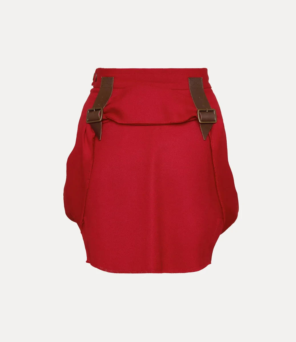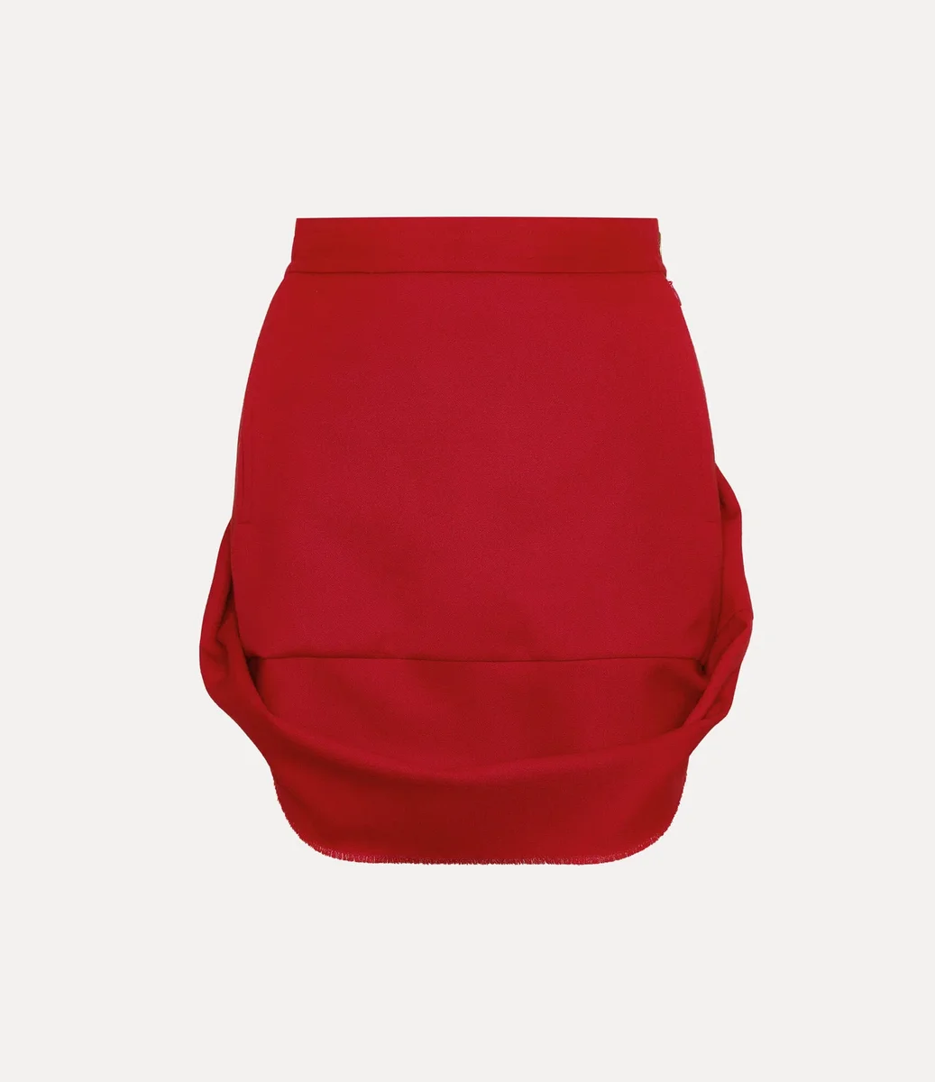 Nasza mini spódnica Frame jest wykonana z miękkiej mieszanki wełny, ma wysoki stan i obszerną, dwuwarstwową sylwetkę. Charakteryzuje się delikatnie zakrzywionym drapowaniem z przodu i surowym wykończeniem rąbka, pozostając wierna punkowej estetyce Vivienne.