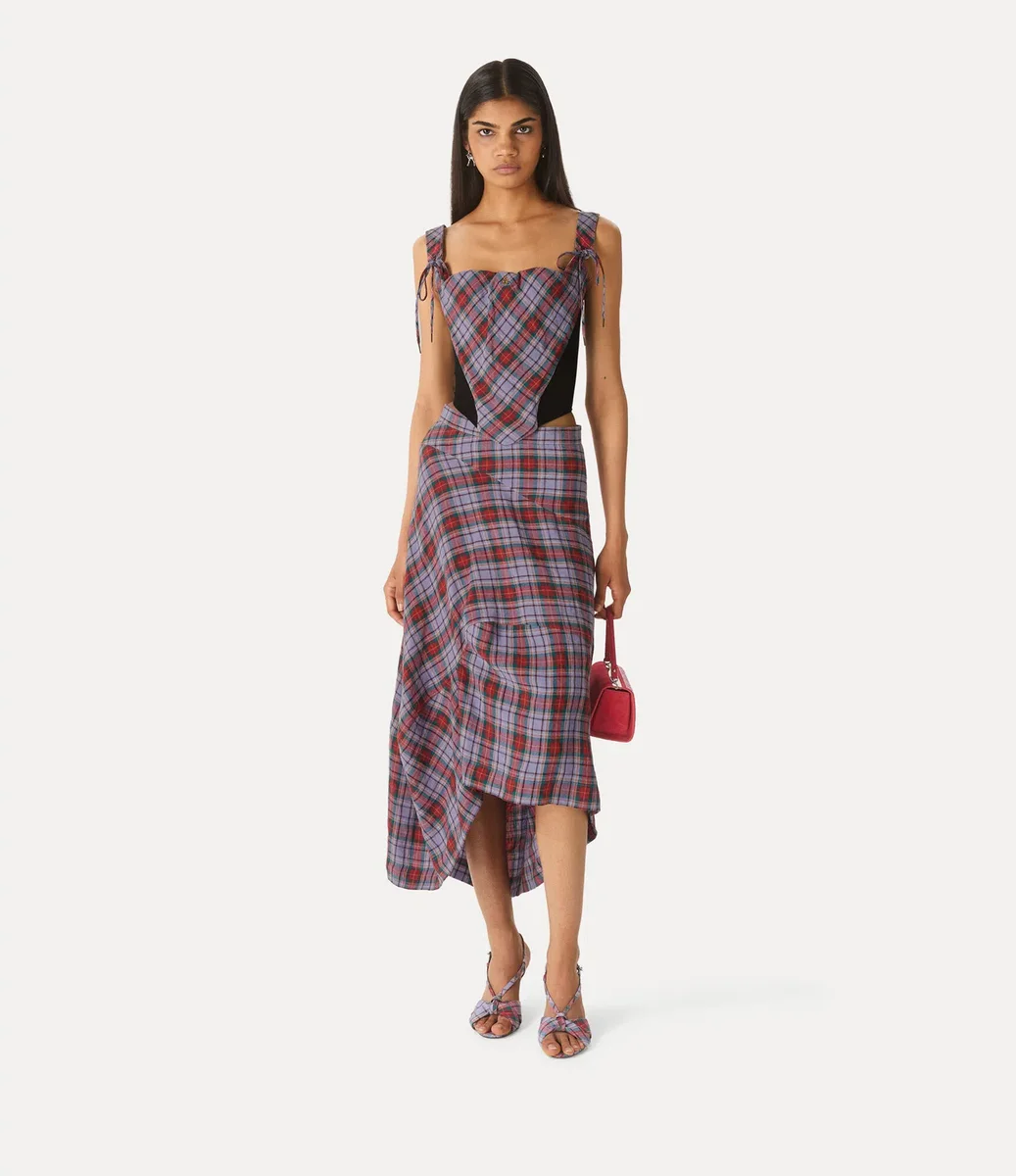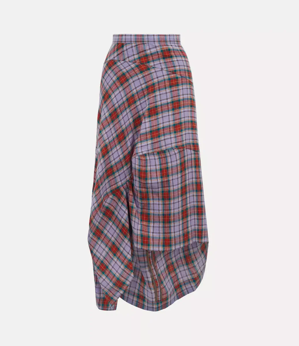 Nawiązująca do charakterystycznej kolekcji Gold Label na sezon jesień-zima 2001 r. „Wild Beauty”, nasza spódnica Aeroplane ma wysoki stan, który przechodzi w miękki asymetryczny dół z obszernymi fałdami. Ozdobiona odważnym motywem „Louth Tartan”, spódnica ma ukryte zapięcie i ukośne panele, które podkreślają drapowaną sylwetkę.p>