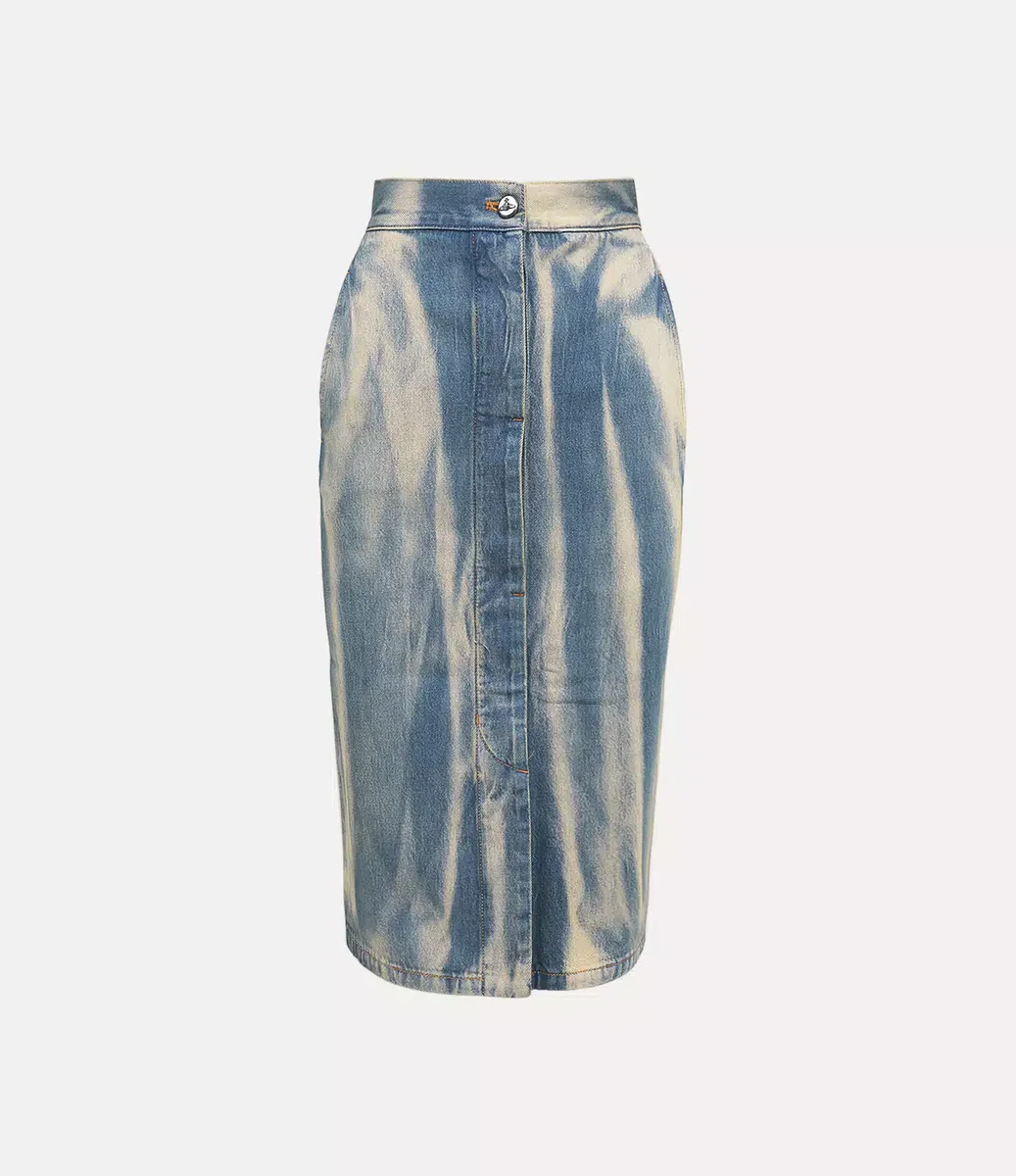 Spódnica-spodnie Vivienne Westwood ma bawełniany profil i jest ozdobiona wyblakłym, wybielonym wzorem, który nadaje jej postarzany, vintage’owy wygląd.