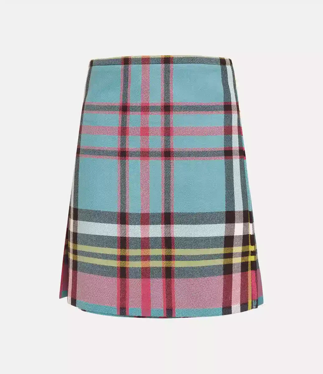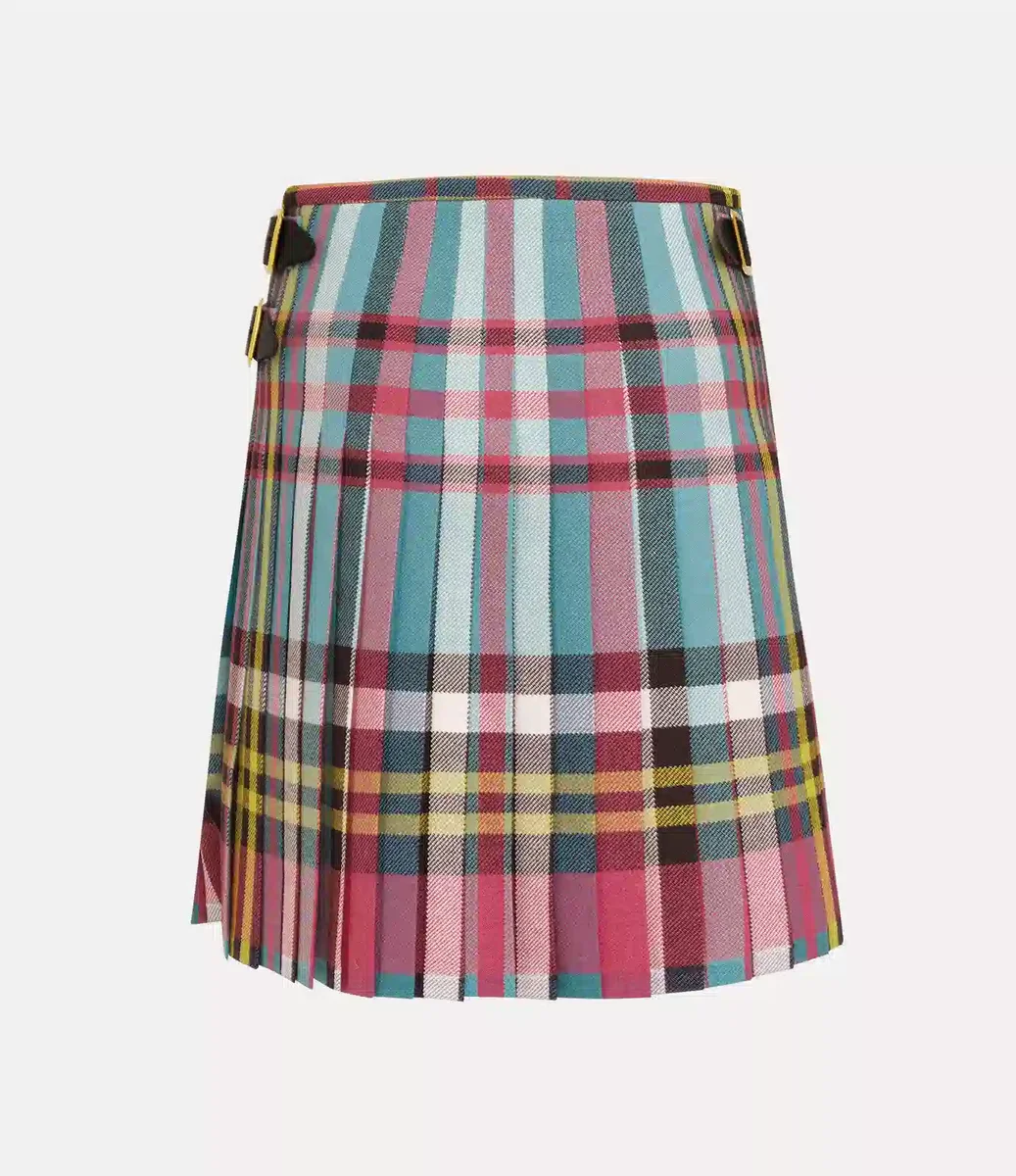 Nasza średnia długość kiltu Worlds End to archiwalny model z charakterystycznym wzorem, na którym widnieje powiększona wersja kultowego tartanu „MacAndreas”, po raz pierwszy zaprezentowanego w kolekcji Vivienne Westwood „Anglomania” na sezon jesień-zima 1993. Kilt, wykonany z wełnianej tkaniny pochodzącej z Lochcarron w Szkocji, ma wysoki stan i plisowane wykończenie. Zaprojektowany tak, aby owijać się wokół talii, można go dopasować do indywidualnych potrzeb za pomocą klamer po obu stronach.