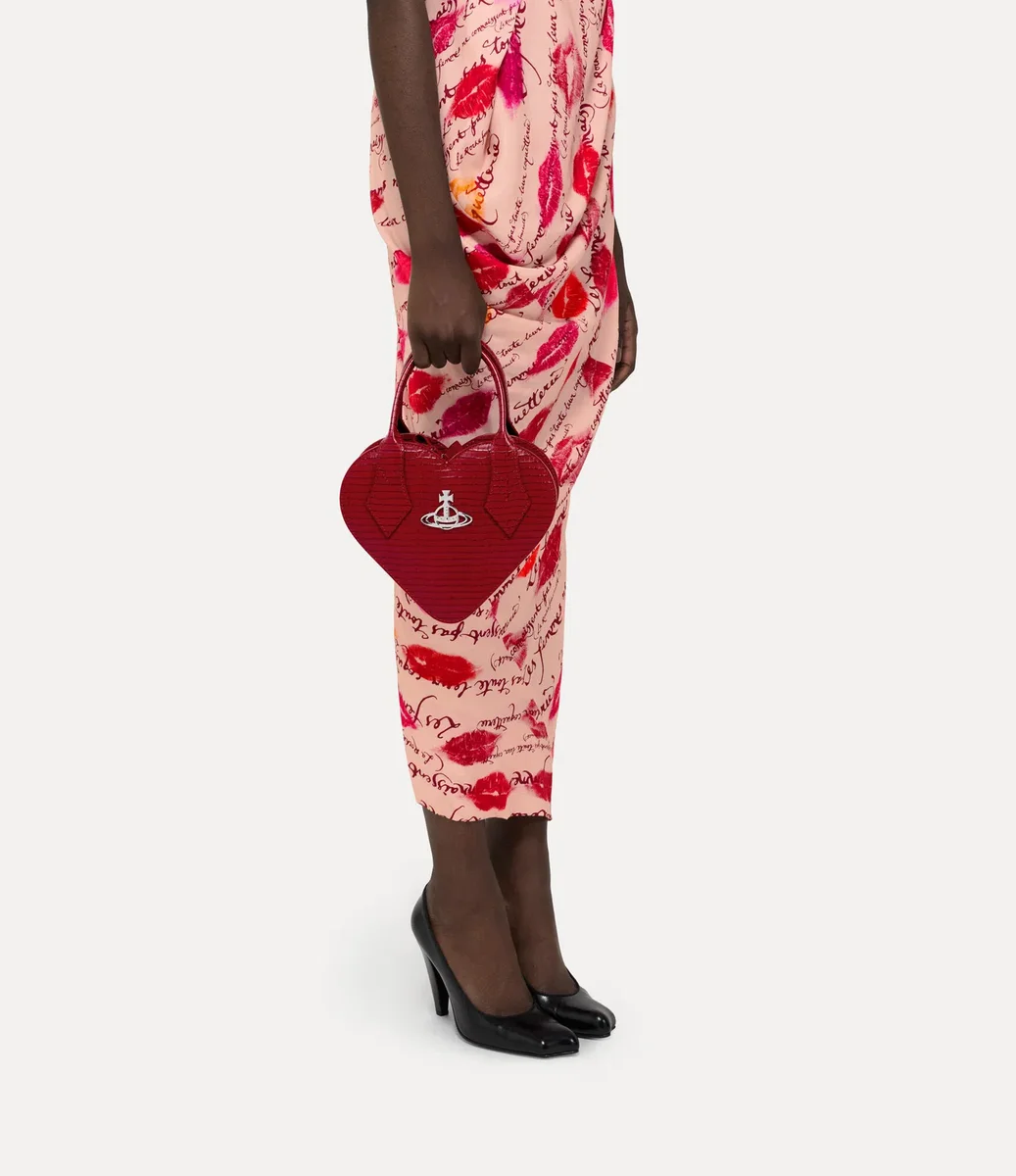 Nasza torebka Josephine Heart Crossbody stanowi nową interpretację charakterystycznego dla marki motywu serca, przywołującego miłość Vivienne do ludzkości i planety. Wykonana z tłoczonej skóry imitującej skórę krokodyla, torebka ma elegancki, jednoprzegrodowy design z zamkiem błyskawicznym na całym obwodzie, ozdobiony naszym klasycznym motywem „Line Orb”.