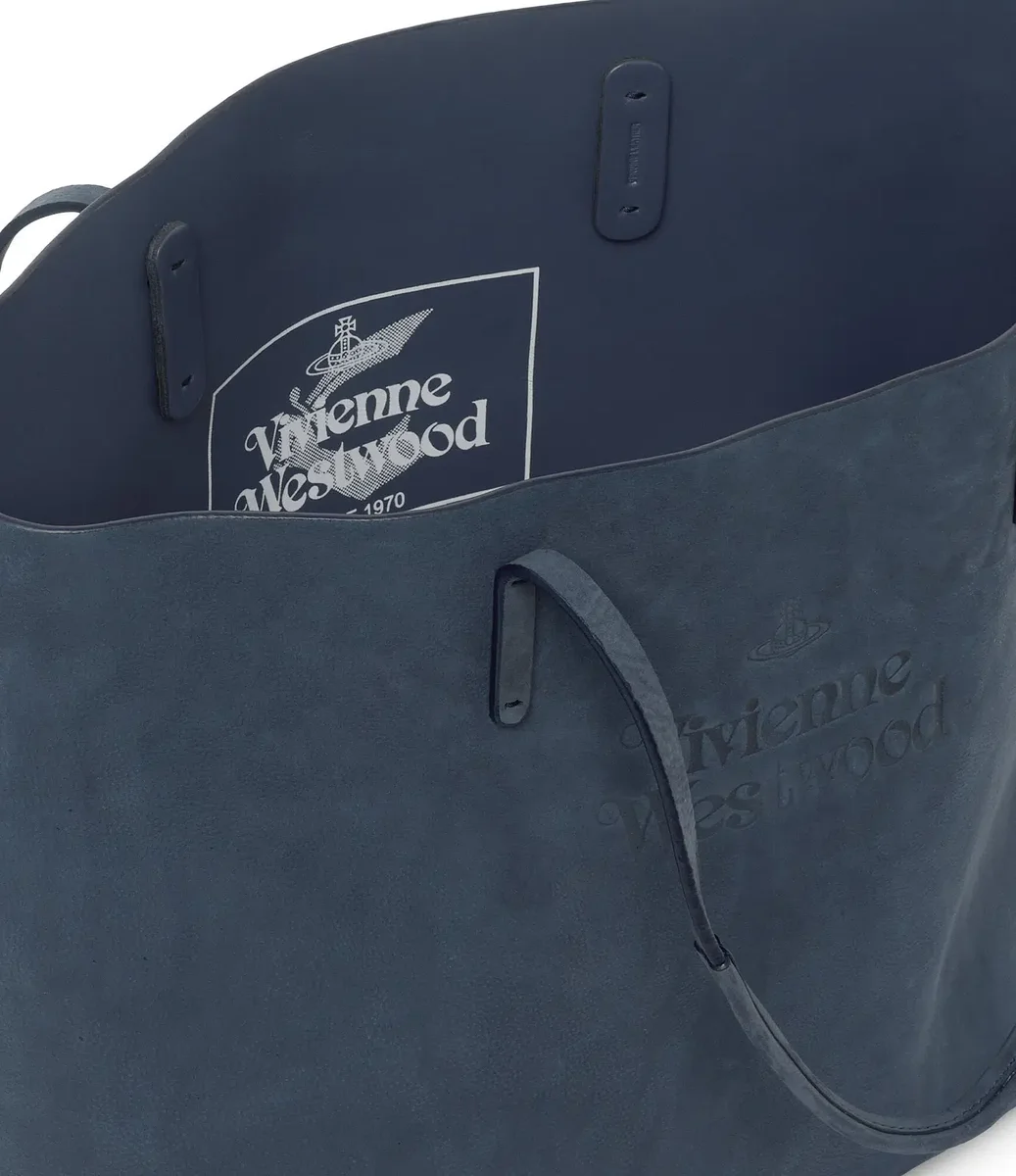 Torba Studio Shopper należy do naszej kolekcji Made in Kenya, stworzonej we współpracy z Ethical Fashion Initiative. Wykonana z niebieskiej skóry nubukowej, ma wytłoczony panel przedni ozdobiony charakterystycznym dla marki motywem kuli i liter.