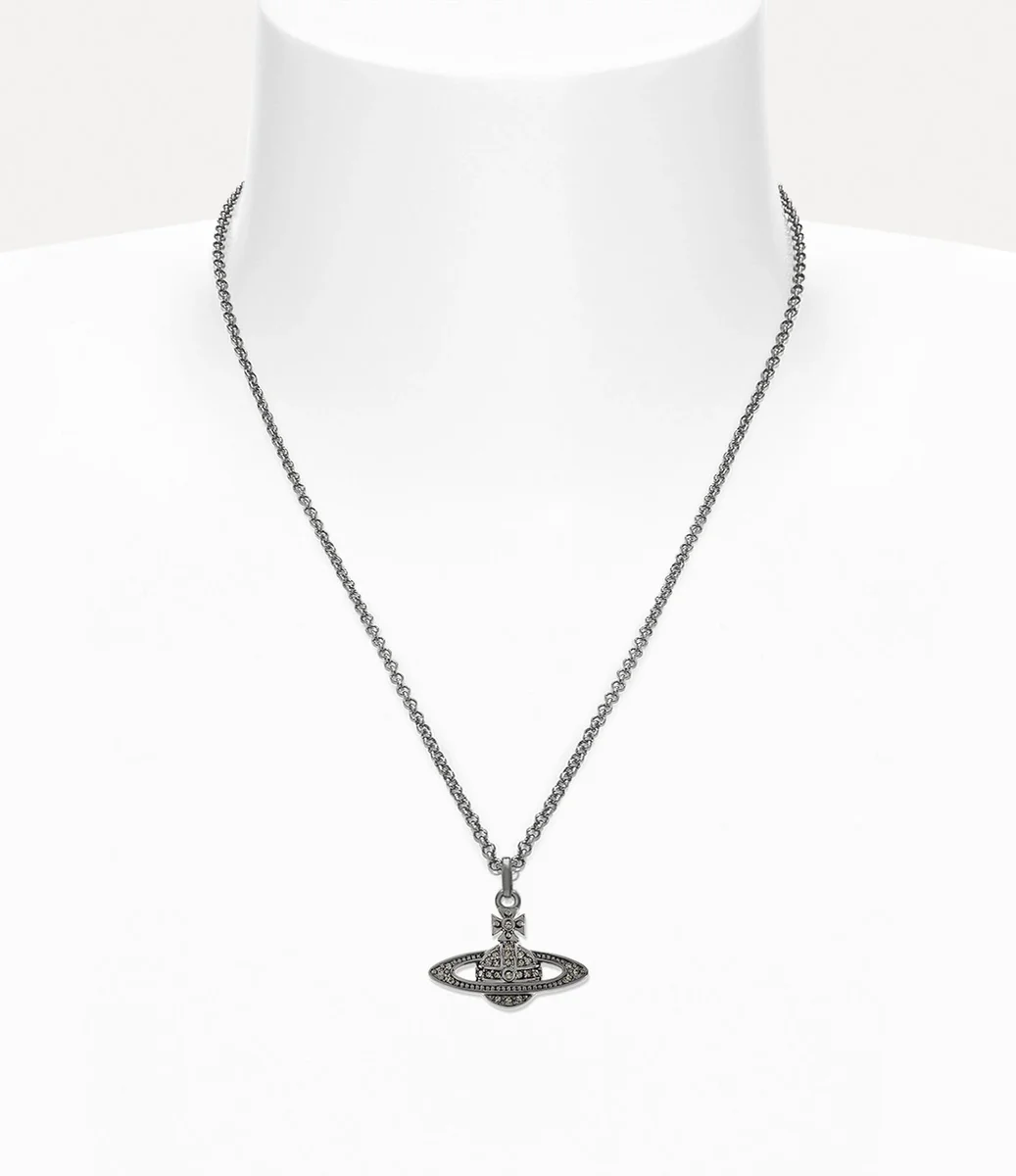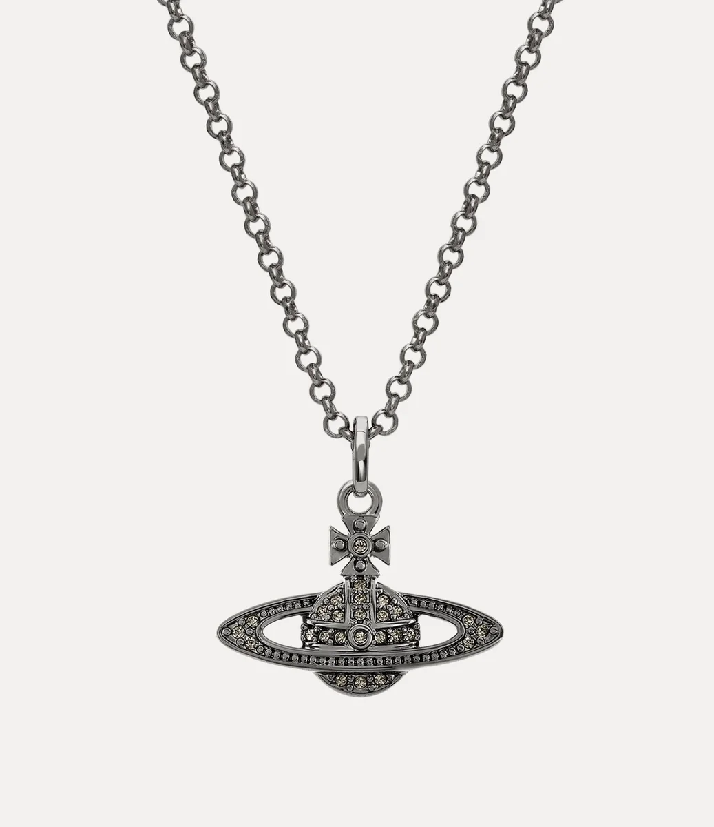 Sylwetka kuli jest synonimem wizji Vivienne, która przenosi tradycję w przyszłość. Naszyjnik Man. Mini Bas Relief Orb Pendant ma kształt kuli, ozdobiony czarnymi kryształowymi detalami i posrebrzanym wykończeniem.
