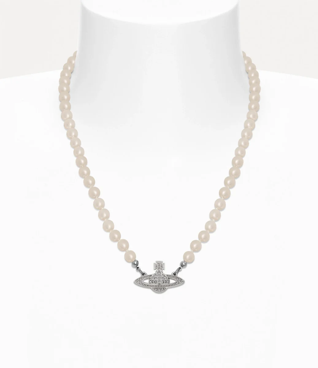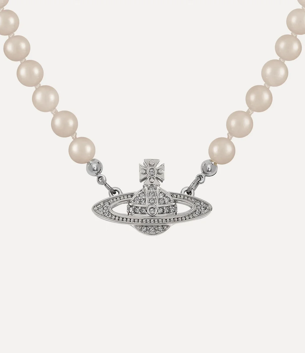 Perły pozostają istotnym elementem ikonografii domu mody, przywołując poczucie minionego luksusu. Naszyjnik Man. Mini Bas Relief Pearl ma łańcuszek ze szklanych pereł, uzupełniony płaską kulą inkrustowaną kryształami w środkowej części projektu – przywołując wizję Vivienne dotyczącą przeniesienia tradycji w przyszłość.