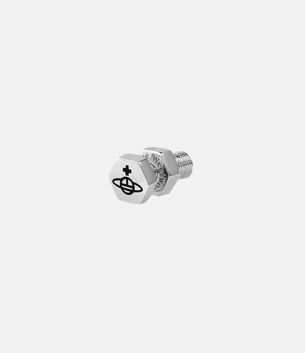 Srebrna kolczyka Adel Single oddaje wizję Vivienne Westwood, polegającą na płynnym łączeniu tradycji z przyszłością. Wykonana tak, aby naśladować sylwetkę prawdziwej śruby, posiada misternie wygrawerowaną kulę z przodu. Ten wyjątkowy element wygodnie mocuje się w uchu za pomocą śrubowego zapięcia motylkowego, tworząc indywidualny, DIY charakter, który odzwierciedla charakterystyczną dla marki punkową estetykę.