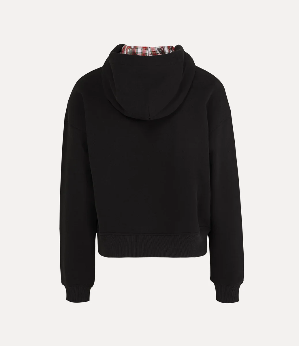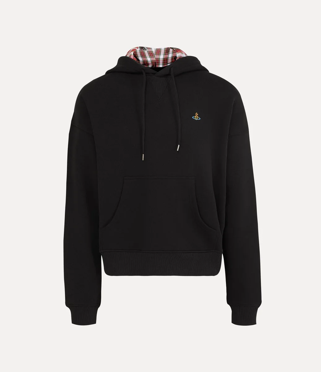 - Kontrastowa podszewka kaptura w kratę