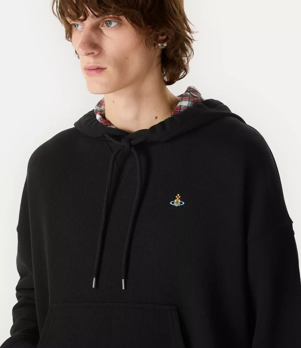Nasza bluza z kapturem Ashton została wykonana z miękkiej bawełny organicznej i ma luźny krój, a na piersi znajduje się haftowana wielobarwna kula. Kaptur jest podszyty charakterystyczną dla marki czerwoną kratą, na którą nałożono grafikę autorstwa artysty Dominica Myatta, przedstawiającą świat zaśmiecony śmieciami w ironicznej wizji utopii.