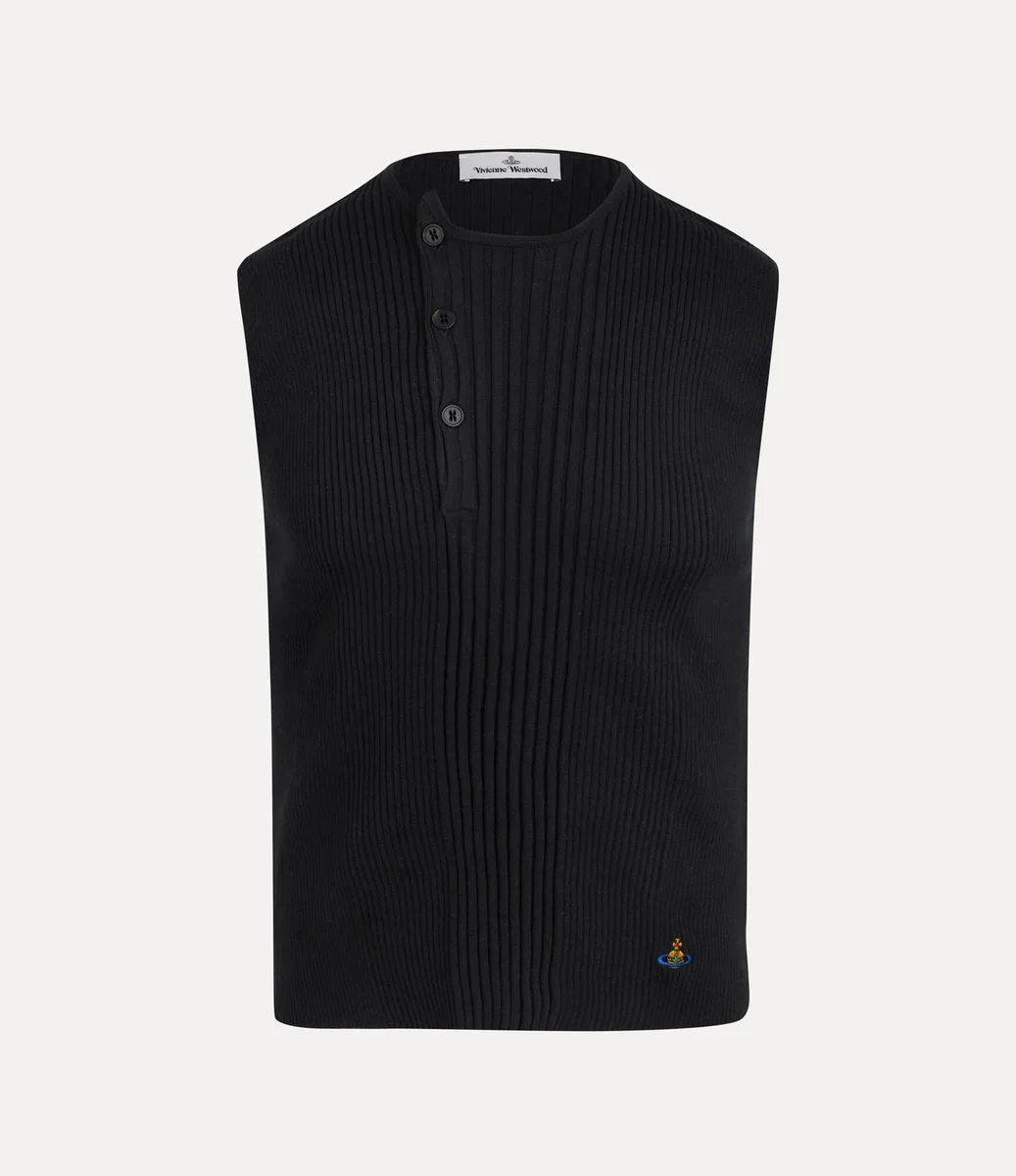 Nasza kamizelka Tegan jest wykonana z lekkiej mieszanki bawełny i kaszmiru i ma zakrzywiony dół oraz okrągły dekolt, uzupełniony zapięciem na ćwierć długości. Model ma pionowe prążki na środkowym panelu, które wydłużają sylwetkę.