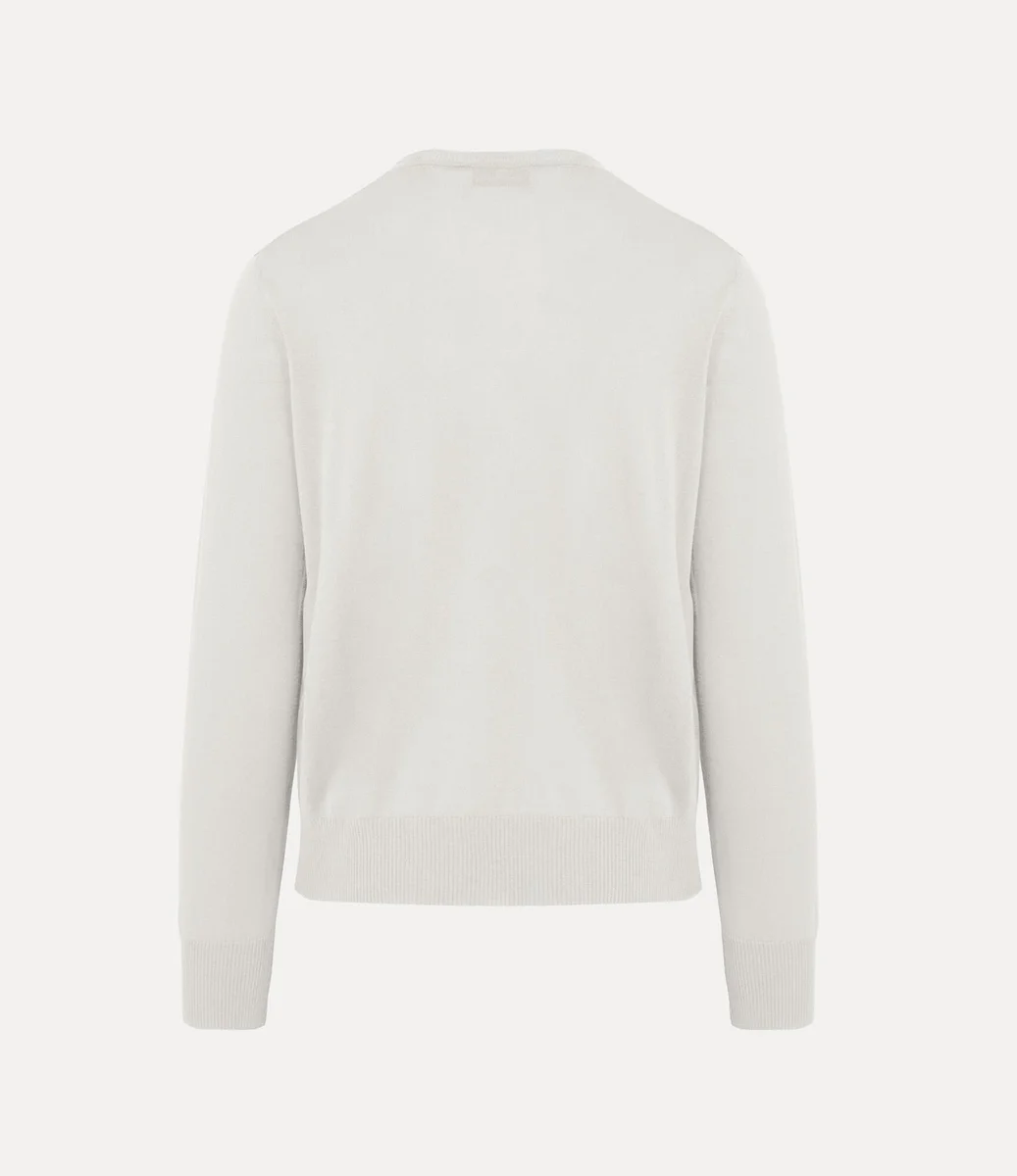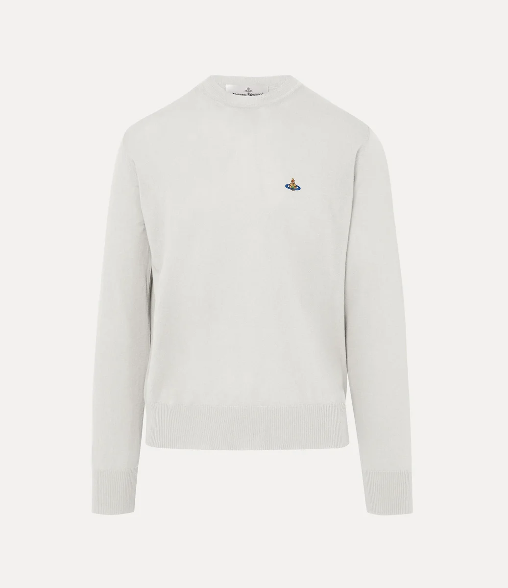 Sweter Alex Round Neck jest wykonany z miękkiej wełny i ma prążkowany dekolt w serek, prosty dół oraz długie rękawy z mankietami. Ozdobiony haftowanym motywem kuli po lewej stronie klatki piersiowej, odzwierciedla wizję Vivienne, która chce przenieść tradycję w przyszłość.