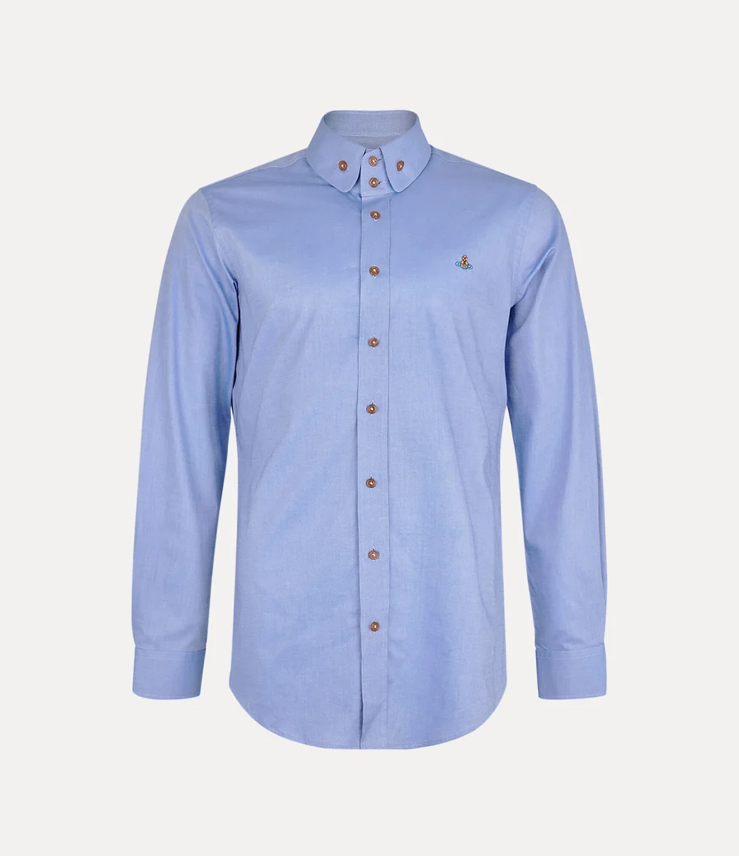 Koszula Krall z dwoma guzikami charakteryzuje się dwoma guzikami przy szyi i zaokrąglonym kołnierzem, a także delikatnie zaokrąglonym dołem. Długie rękawy zdobi haftowana kula, symbolizująca tradycję, otoczona pierścieniami Saturna, symbolizującymi przyszłość.