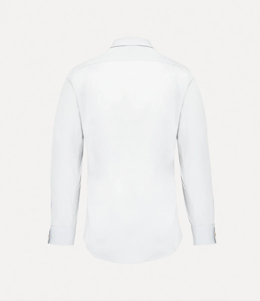 Sylwetka koszuli Two Button Krall czerpie inspirację z archiwalnego projektu, charakteryzującego się kultowym kołnierzem z dwoma guzikami Vivienne. Model posiada charakterystyczny haft w kształcie kuli po lewej stronie klatki piersiowej, który jest synonimem wizji Vivienne dotyczącej przeniesienia tradycji w przyszłość.