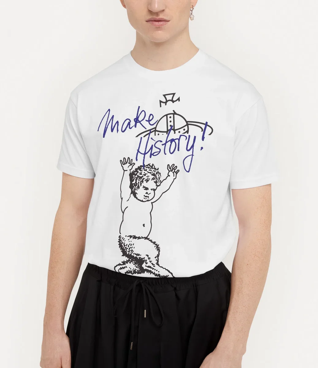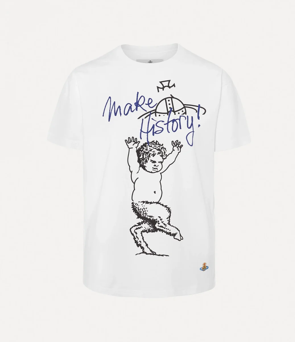 Klasyczna koszulka Fawn ma okrągły dekolt, ozdobiony prążkowanymi wykończeniami, które nadają jej klasyczny wygląd. Koszulka ma motyw „Fawn”, który po raz pierwszy pojawił się w kolekcji „Anglophilia” na sezon jesień-zima 2002, oraz hasło „Make History” – nawiązujące do jednego z kluczowych przesłań Vivienne dotyczących zmian klimatycznych.