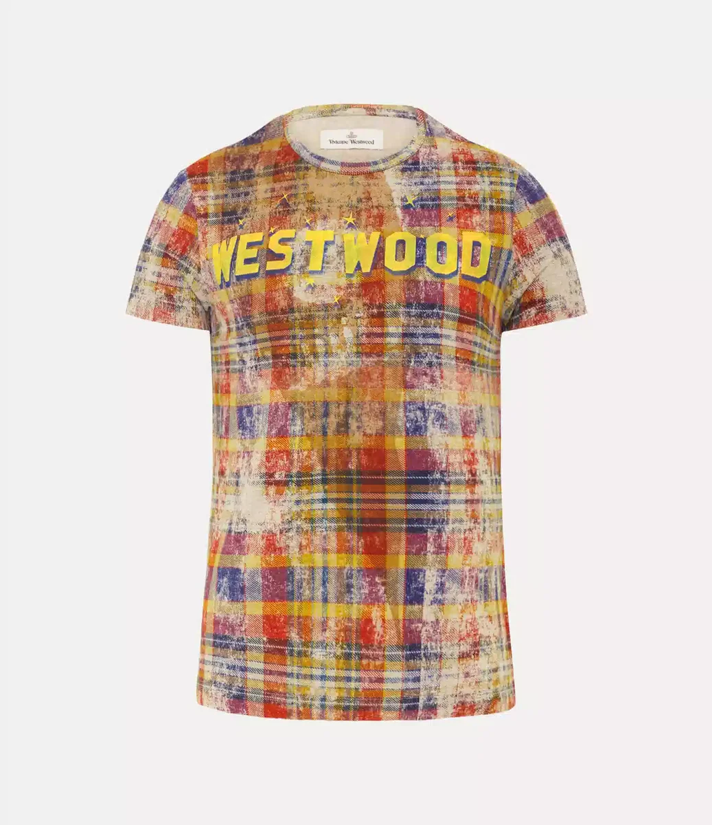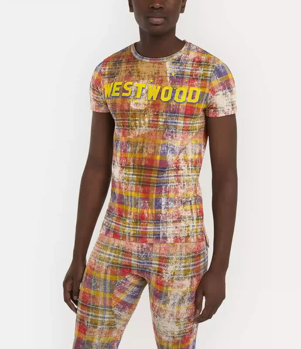 Nasza koszulka Peru ma motyw postarzanego tartanu na całej powierzchni, inspirowany tradycyjnymi strojami szkockich górali. Na piersi znajduje się nadruk „Westwood” dużymi żółtymi literami z niebieskim cieniem, inspirowany kultowym znakiem Hollywood.