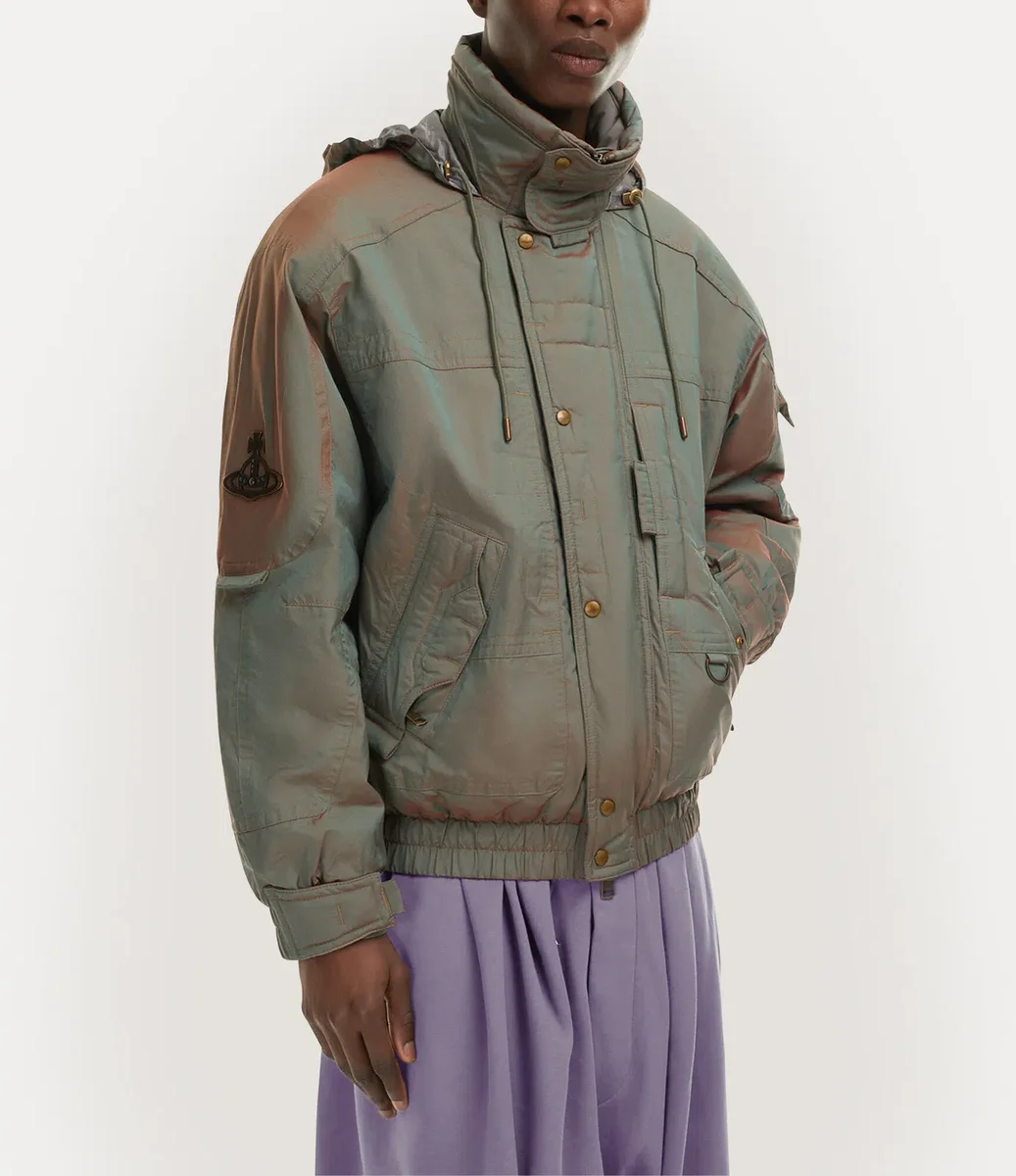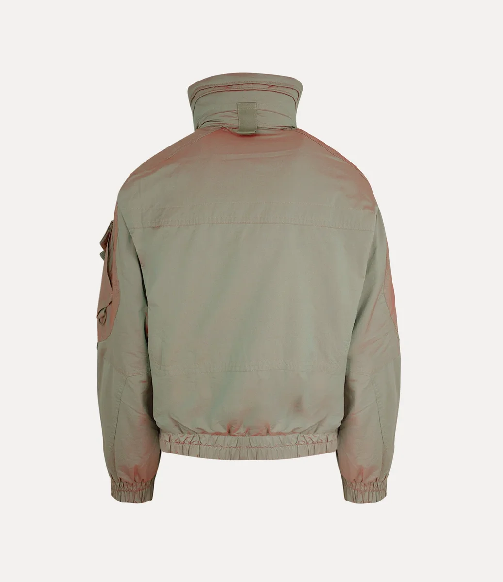 Nasza kurtka bomber Nevada jest wykonana w dwukolorowym wykończeniu, charakteryzującym się delikatnym zielono-brązowym wybarwieniem, które nadaje jej postarzany, opalizujący efekt. Kurtka ma wysoki kołnierz z bezpiecznym zapięciem na pasek, długie raglanowe rękawy i lekko skrócony, obszerny krój.