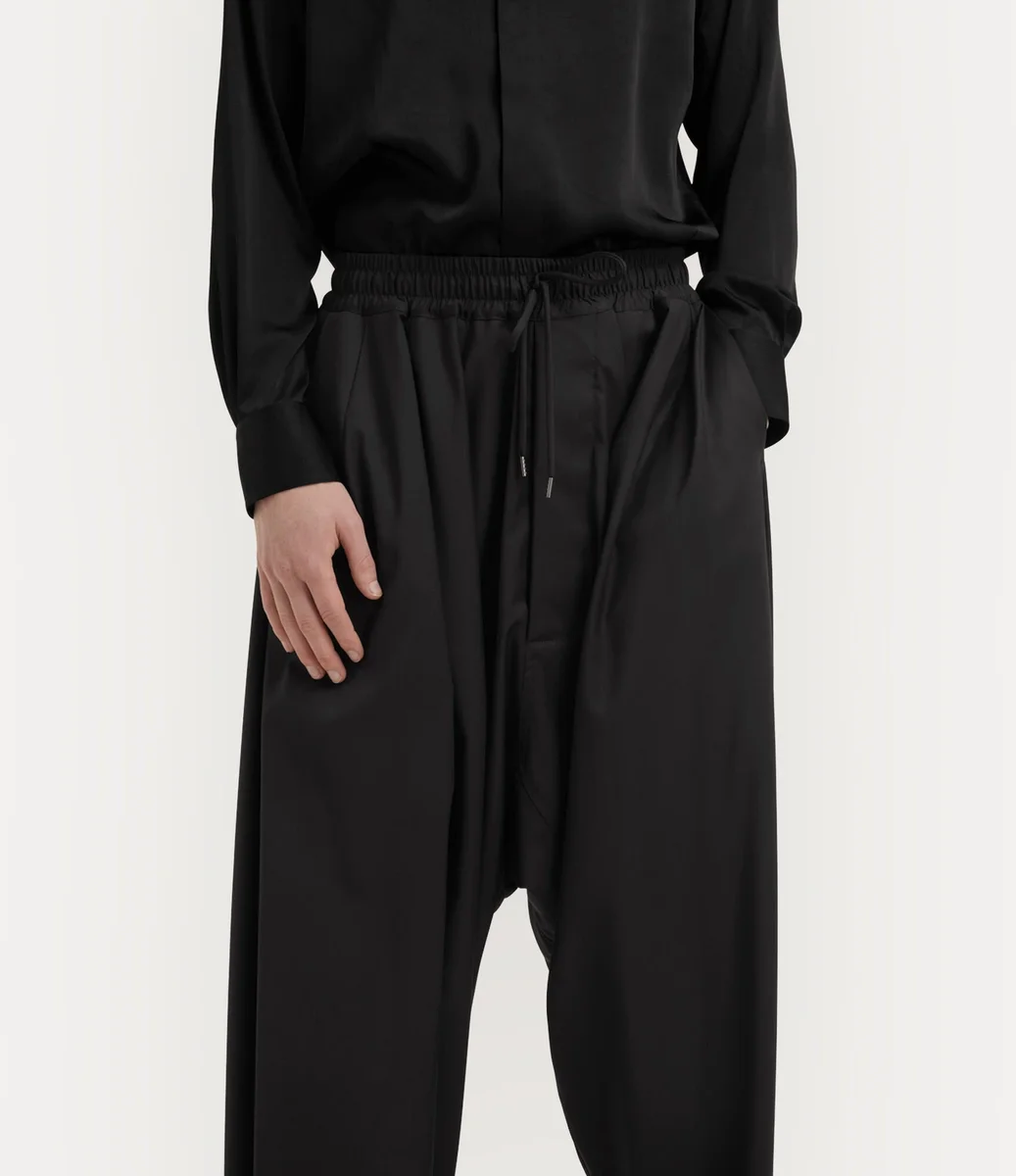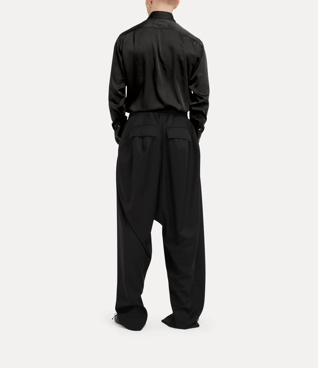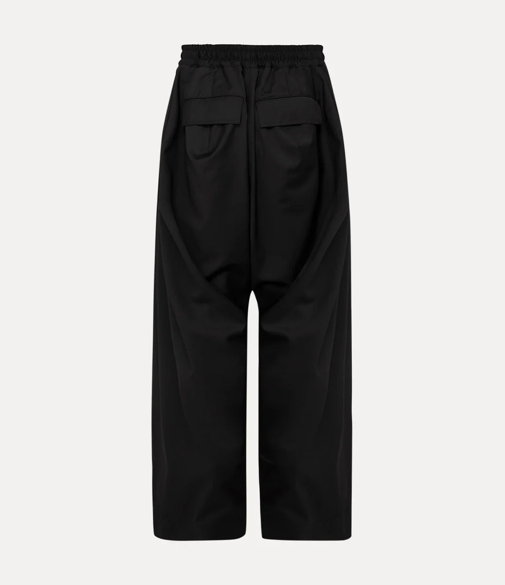 W tym sezonie nasze spodnie Balloon zostały przeprojektowane i wykonane z miękkiej wełny, z wysokim stanem i płynnym zamknięciem na sznurek. Obniżony krok przechodzi w obszerną, szeroką nogawkę, a z tyłu znajdują się dwie kieszenie z klapką.